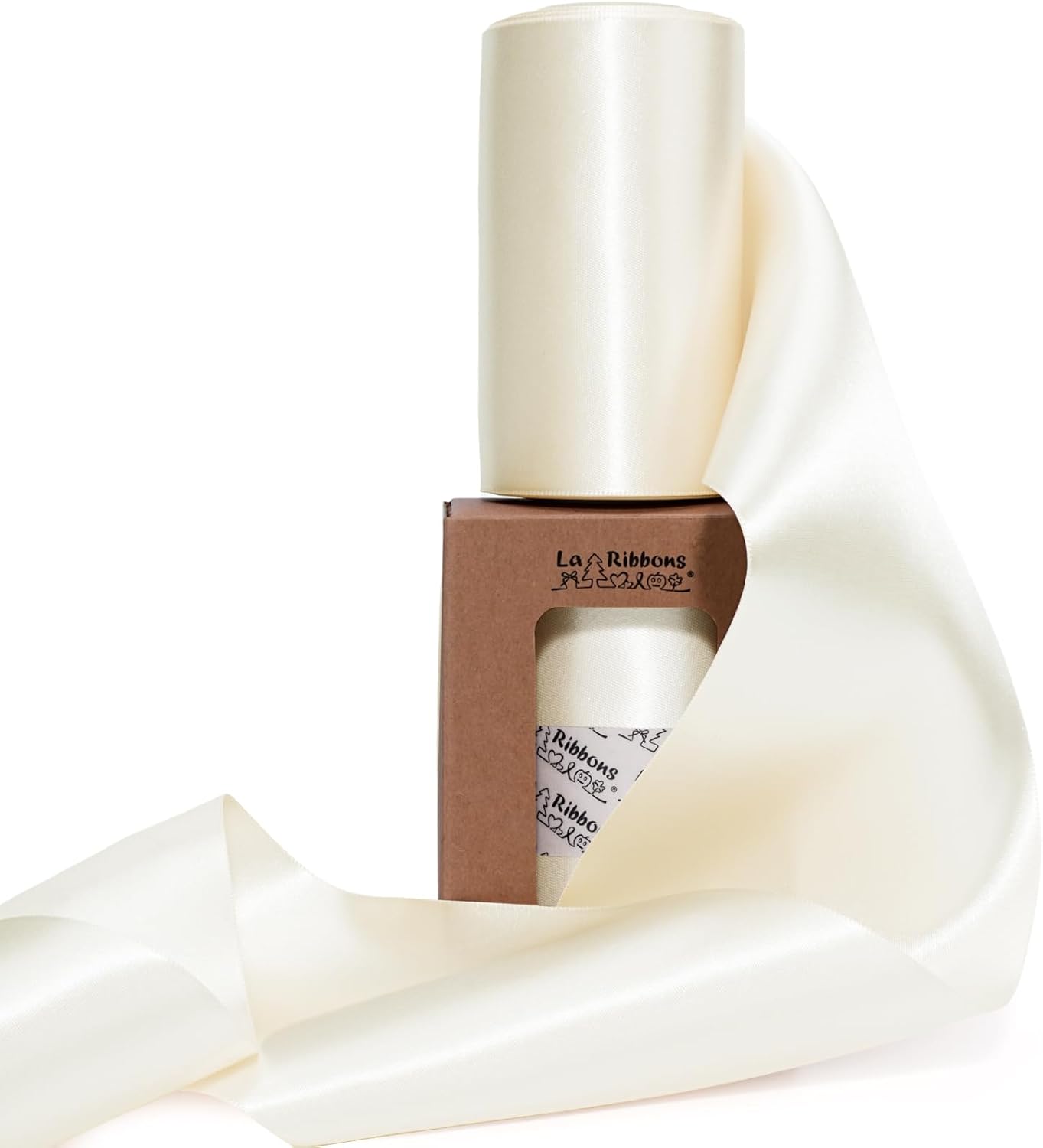LaRibbons Ivory Satin Ribbon 4 Inch 10 Yards Double Faced Luxury White Cream Silk Ribbon for Gift Wrapping Flower Bouquets Bow Christmas Wedding Party Decoration