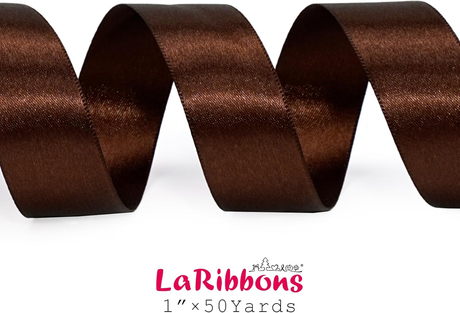 LaRibbons Brown Satin Ribbon 1 Inch 50 Yards Luxury Double Faced Firar Brown Silk Ribbon for Flower Bouquet Crafts Gift Wrapping Wedding Christmas Decoration