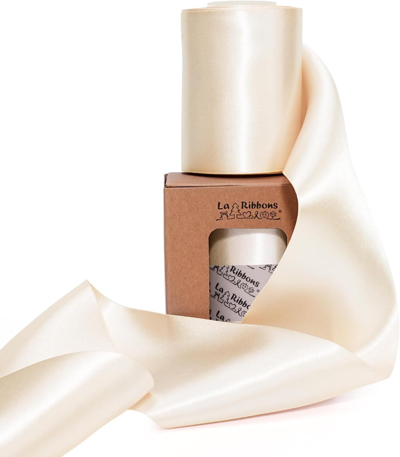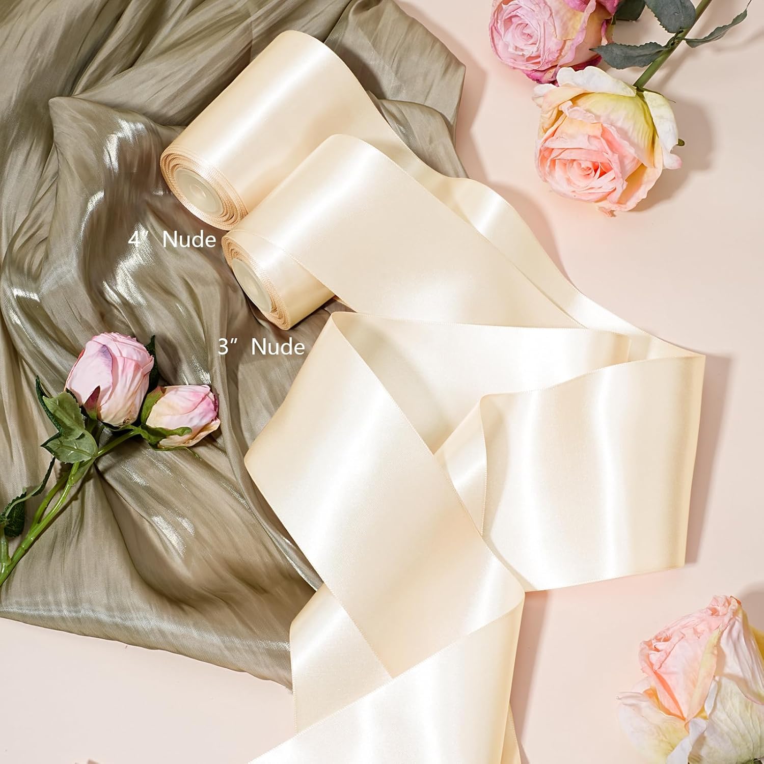 LaRibbons Nude Satin Ribbon 3 Inch 10 Yards Double Faced Luxury Nude Silk Ribbon for Gift Wrapping Flower Bouquets Bow Christmas Wedding Party Decoration