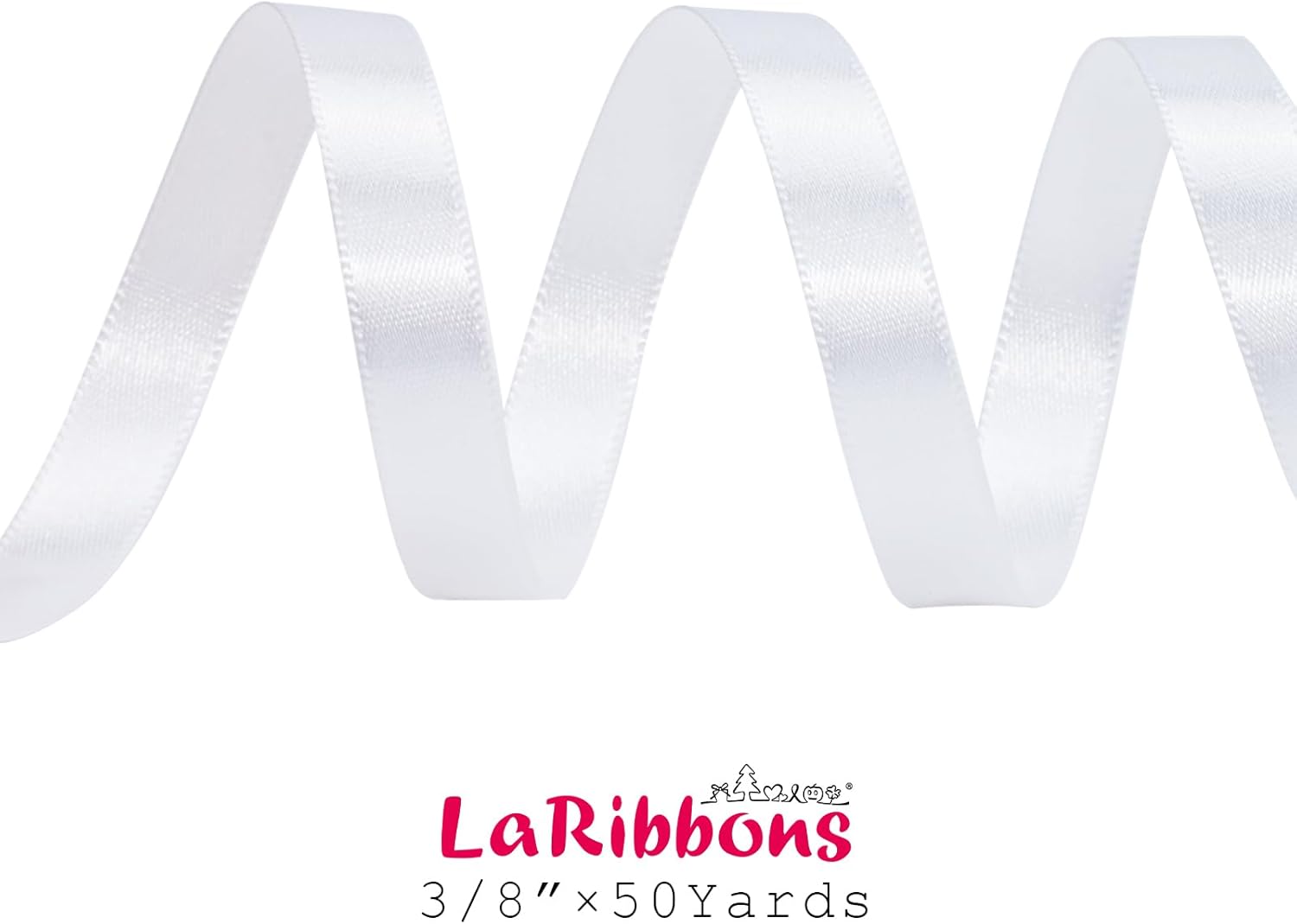 LaRibbons White Satin Ribbon 3/8 Inch 50 Yards Thin Luxury Double Faced Silk Ribbon for Flower Bouquet Crafts Gift Wrapping Wedding Christmas Decoration