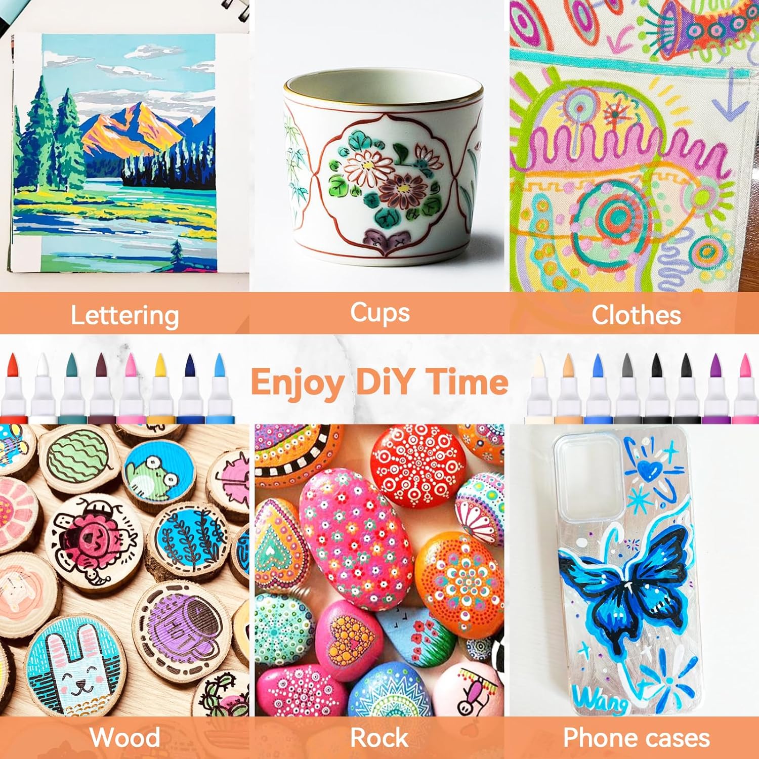 - 【Wide Surface Compatibility】:These single - tip acrylic pens are remarkably versatile in terms of surface compatibility. They work perfectly on paper, canvas, wood, plastic, and even fabric. This makes them suitable for a wide variety of projects, from traditional paper - based drawing and painting to unique crafts like rock painting, customizing fabric items, or adding a personal touch to wooden furniture. No matter which surface you choose, the ink adheres well and offers excellent coverage, opening up a world full of creative possibilities.