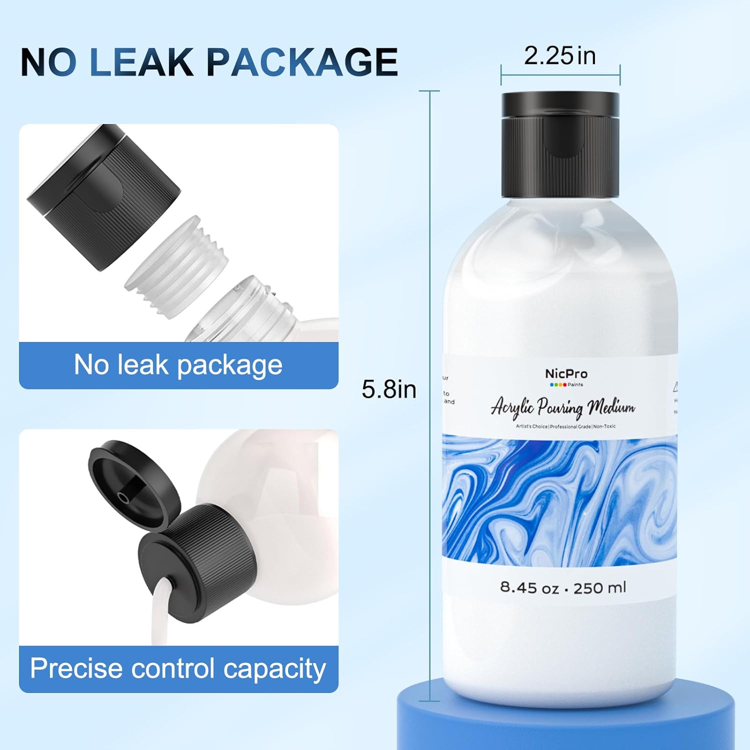 - Large Volume: Nicpro pouring effect medium has 8.45oz / 250ml each bottle. The large volumes are cost-effective and perfect for extensive projects and daily practice