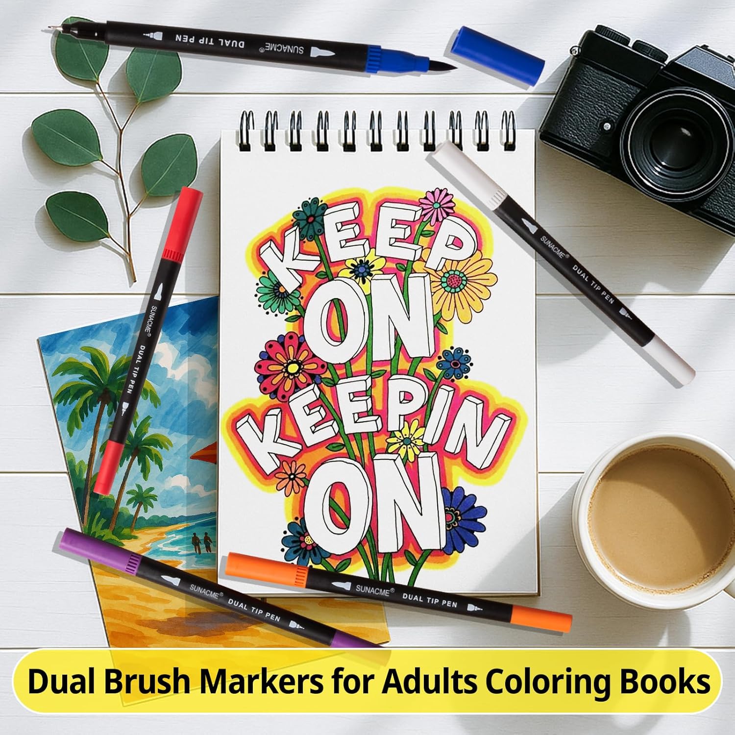 - Convenient Dual Tips: The brush tip ranging from 1-4 mm enable you to color over a large area, draw shadows, hand write letters or calligraphy effortlessly. The 0.4mm fineliner tip allows you to add more details with ease and is also a handy tool when drawing lines and outlining. This dual tip marker will inspire your boundless creativity.