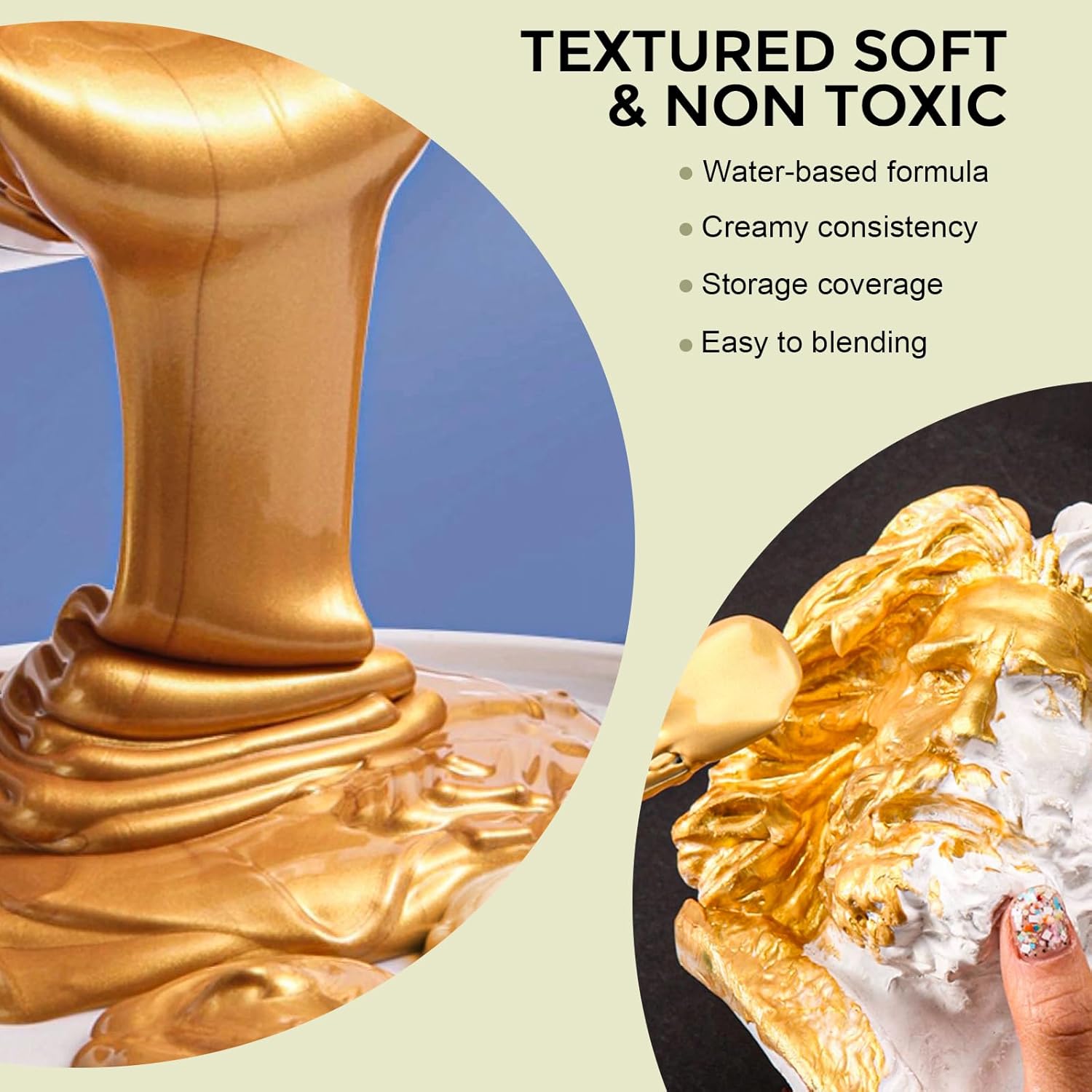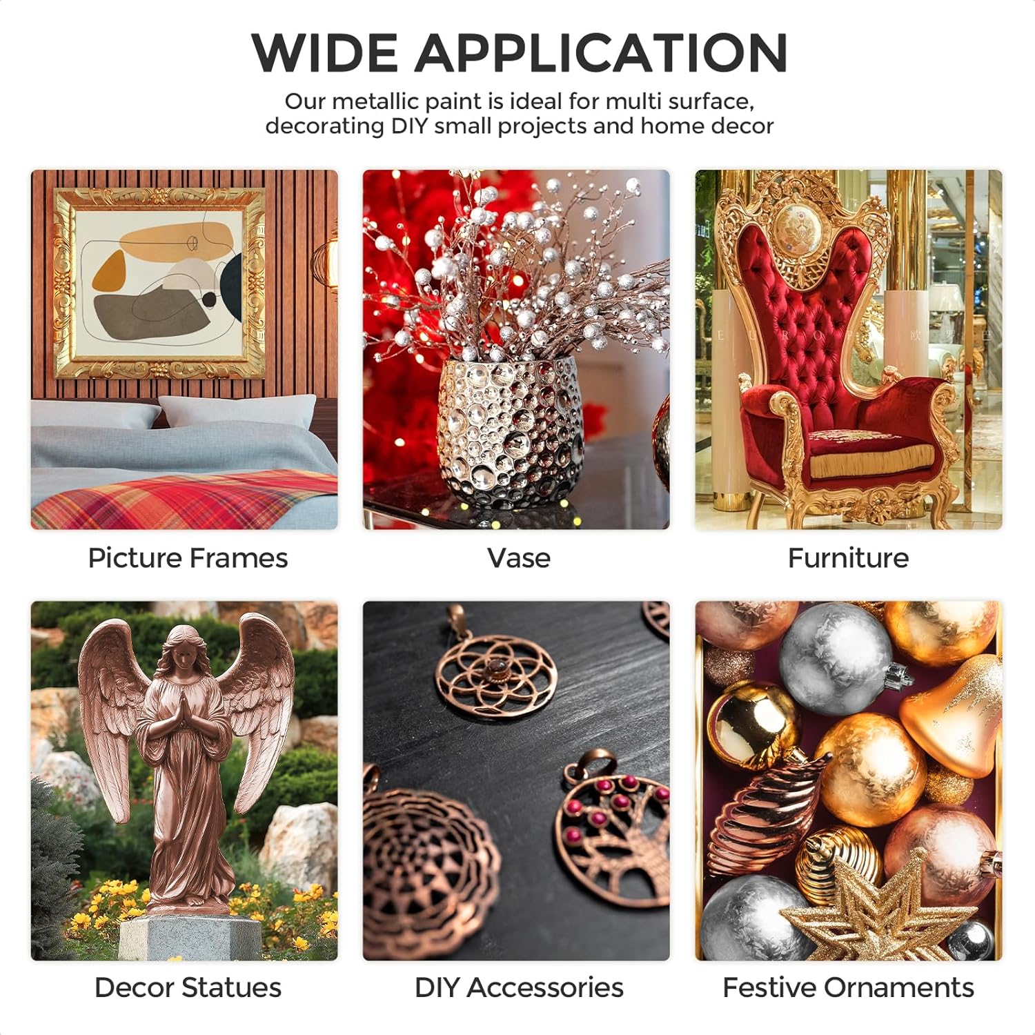 - Easy to Use & Versatile: For best results, clean and dry the surface before painting. Stir paint well, apply evenly with brush, roller, or sponge. Great for acrylic pouring, decorative finishes, and leaf-paint-style highlights. A must-have set for artists, schools, workshops, or anyone wanting a professional metallic effect.