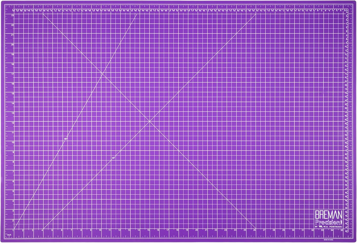 Breman Precision 24x36 Inch Self Healing Cutting Mat - 2-Sided 5-Ply PVC Purple/Gray Cutting Mats for Crafts, Sewing, Quilting and DIY Projects - Durable and Non-Slip Design with Precise Grid Lines