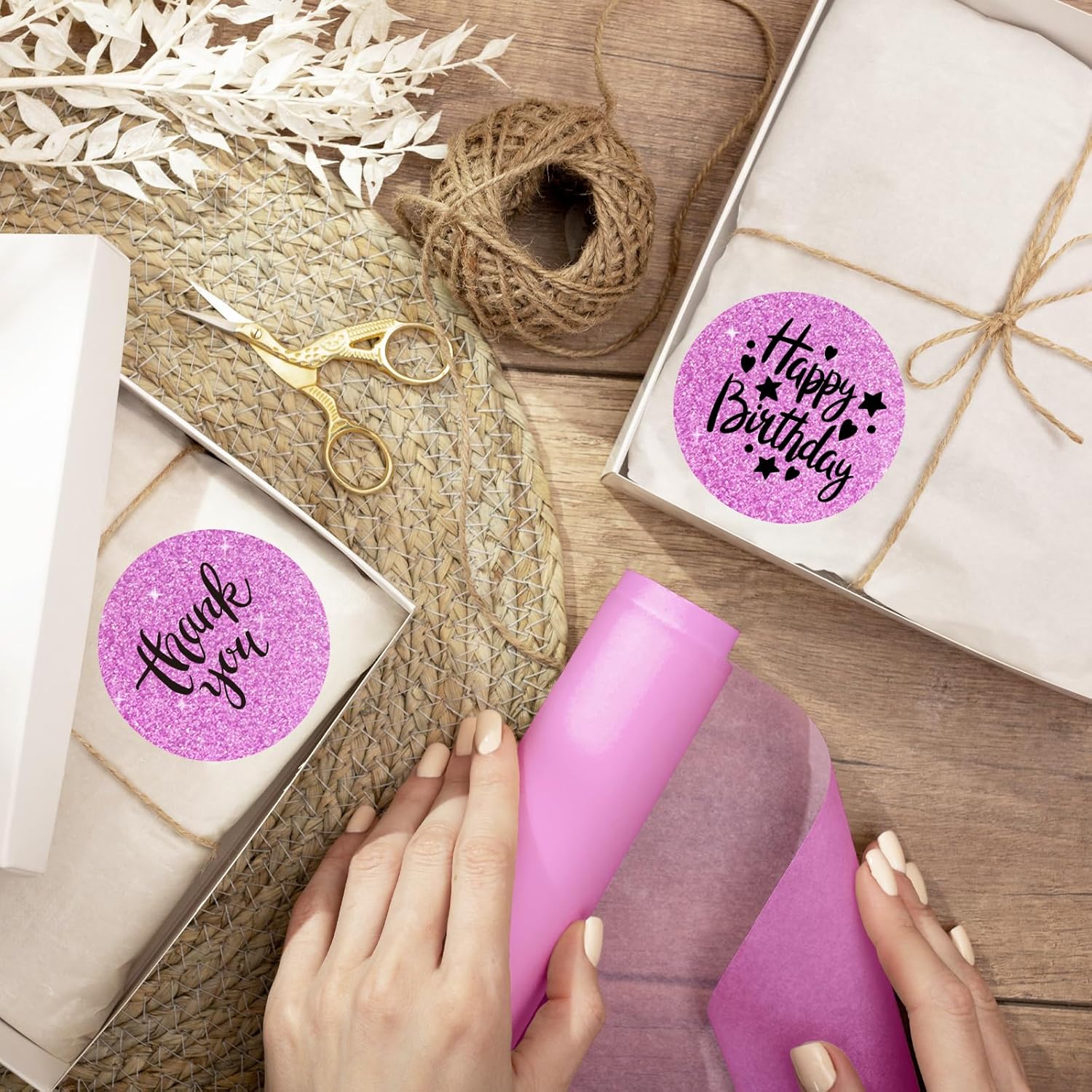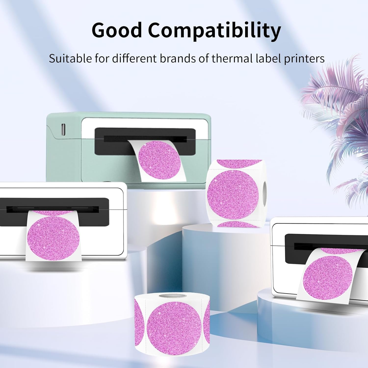 2" Holographic Thermal Label Stickers, Round Direct Thermal Label Stickers, Glitter Thermal Printer Sticker Labels for Gift Wrapping, Self-Adhesive Custom Logo Design- Glitter Pink
