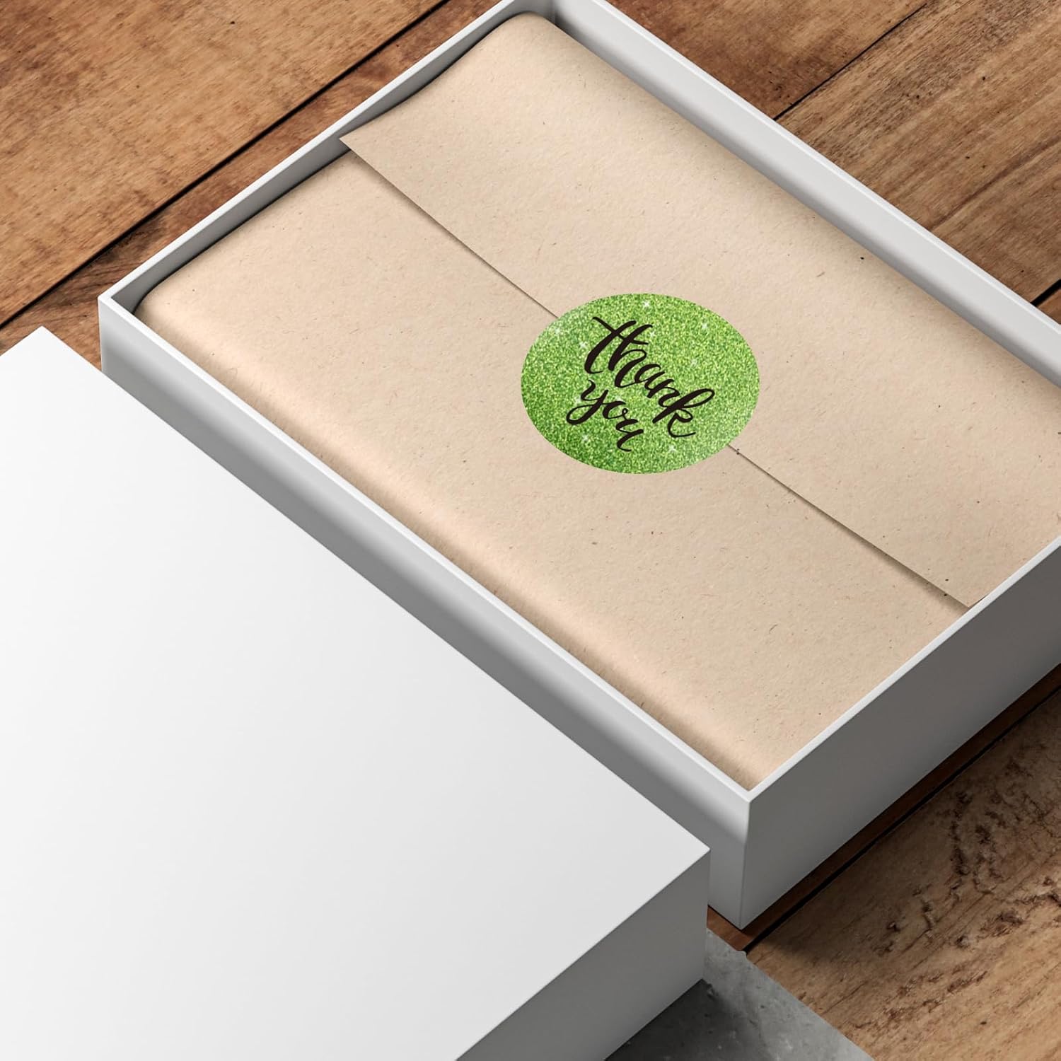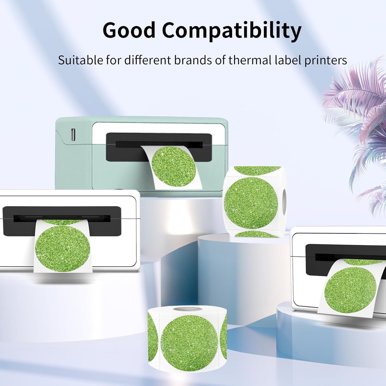 2" Holographic Thermal Label Stickers, Round Direct Thermal Label Stickers, Glitter Thermal Printer Sticker Labels for Gift Wrapping, Self-Adhesive Custom Logo Design-Glitter Green