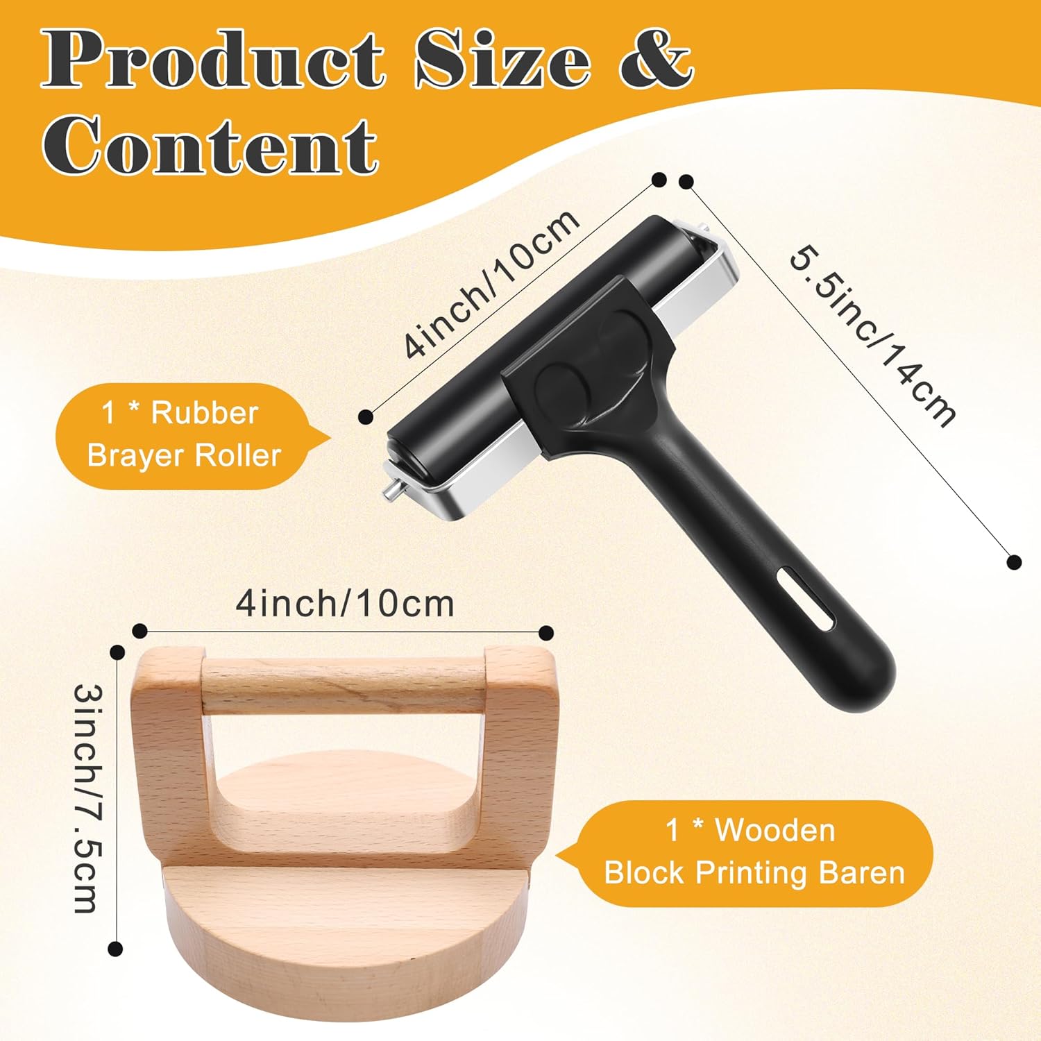 - Complete Set: You will receive 1 wooden block printing baren with 1 rubber brayer roller, ensuring even pressure distribution on the engraved material, facilitating precise and balanced transfer of ink to paper and fabric, and improving printing quality.