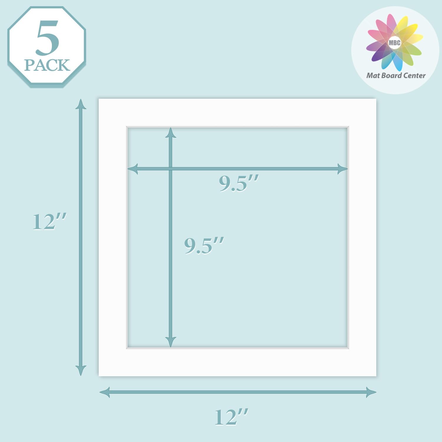 MBC Mat Board Center, 5 Pack 12x12 for 10x10 White Picture Mats Frame Mattes, Bevel Cut, Acid Free, 4-ply Thickness