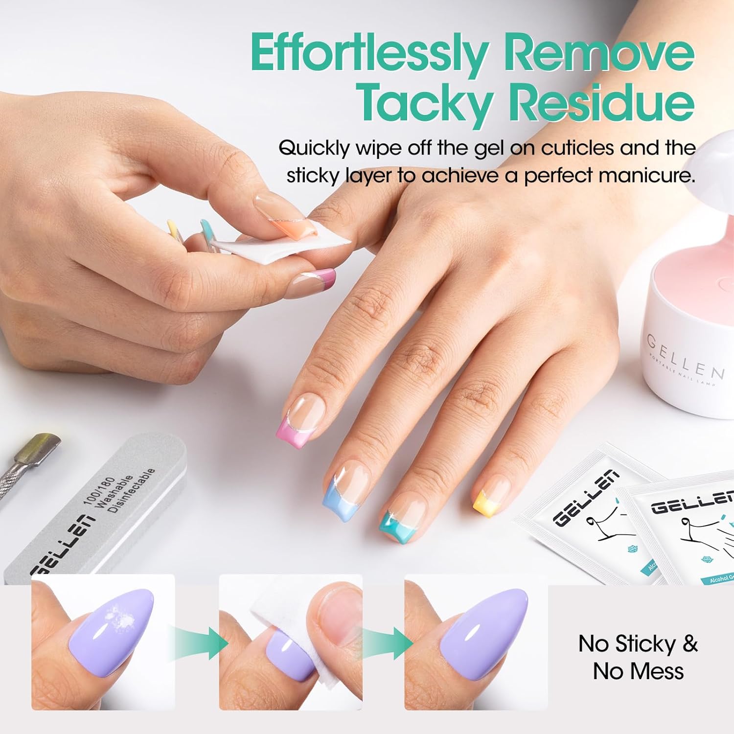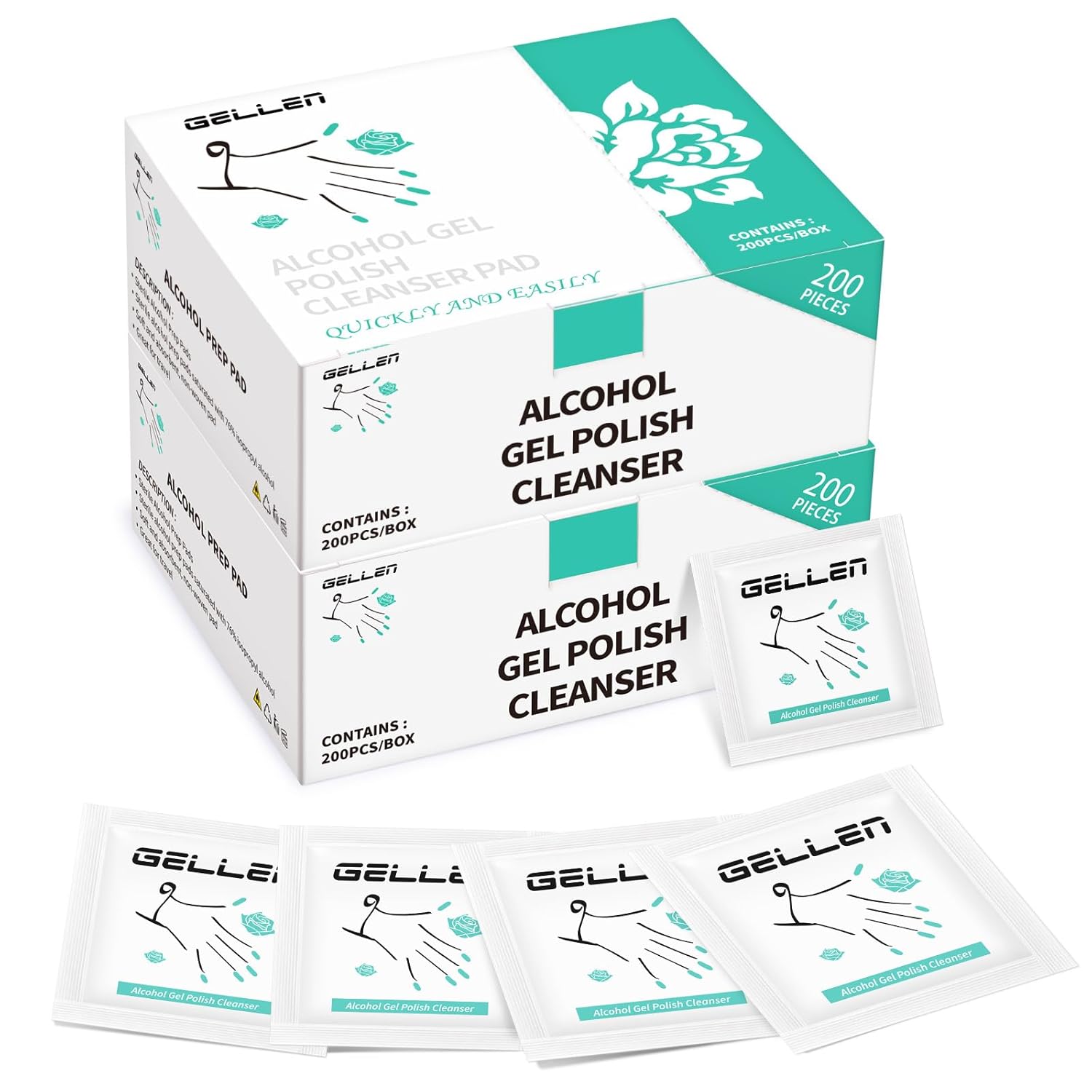 Gellen 400 Pack Nail Cleanser Pads, Alcohol Pads for Nails, Individually Wrapped Nail Prep Pads, Lint-free Tacky Layer Residue Remover Wipes for Acrylic & Builder Gel Polish Press-ons