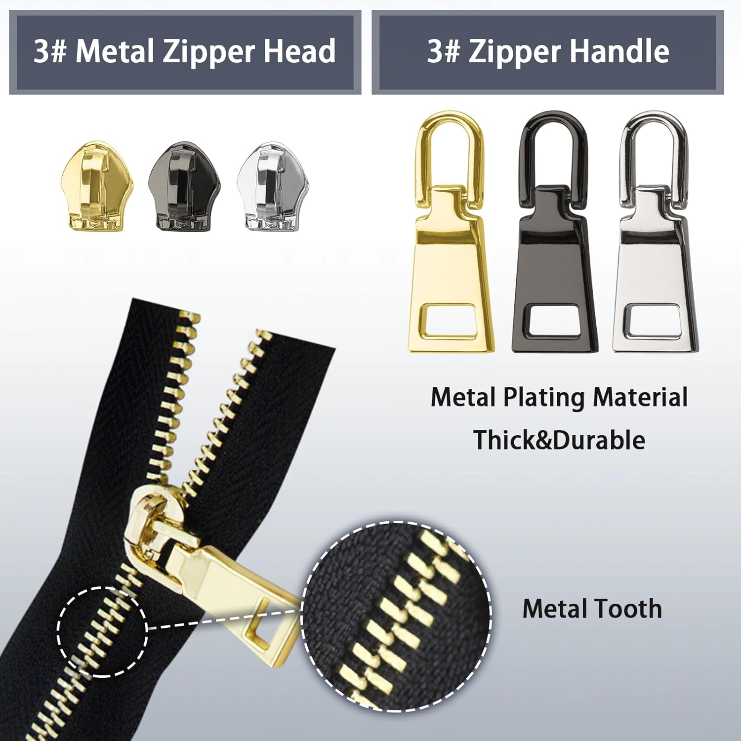 - ONLY for #3 Zippers: The Zipper replacement kit only fits #3 regular zippers, suitable for sweatshirts, jackets, skirts, boot, backpack, purses, etc. With #3 nylon, #3 plastic, #3 metal zipper, it can resolve your mostly the zipper replacement needs