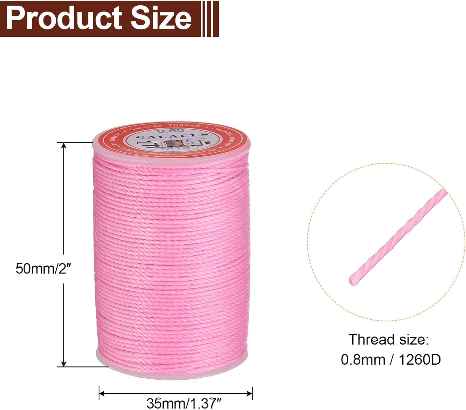 uxcell Round Leather Sewing Waxed Thread, 55m / 60 Yards Wax Polyester String, 0.8mm Waxed Stitching Cord for Leather Crafts, Bookbinding, Bracelets Braided, Pink