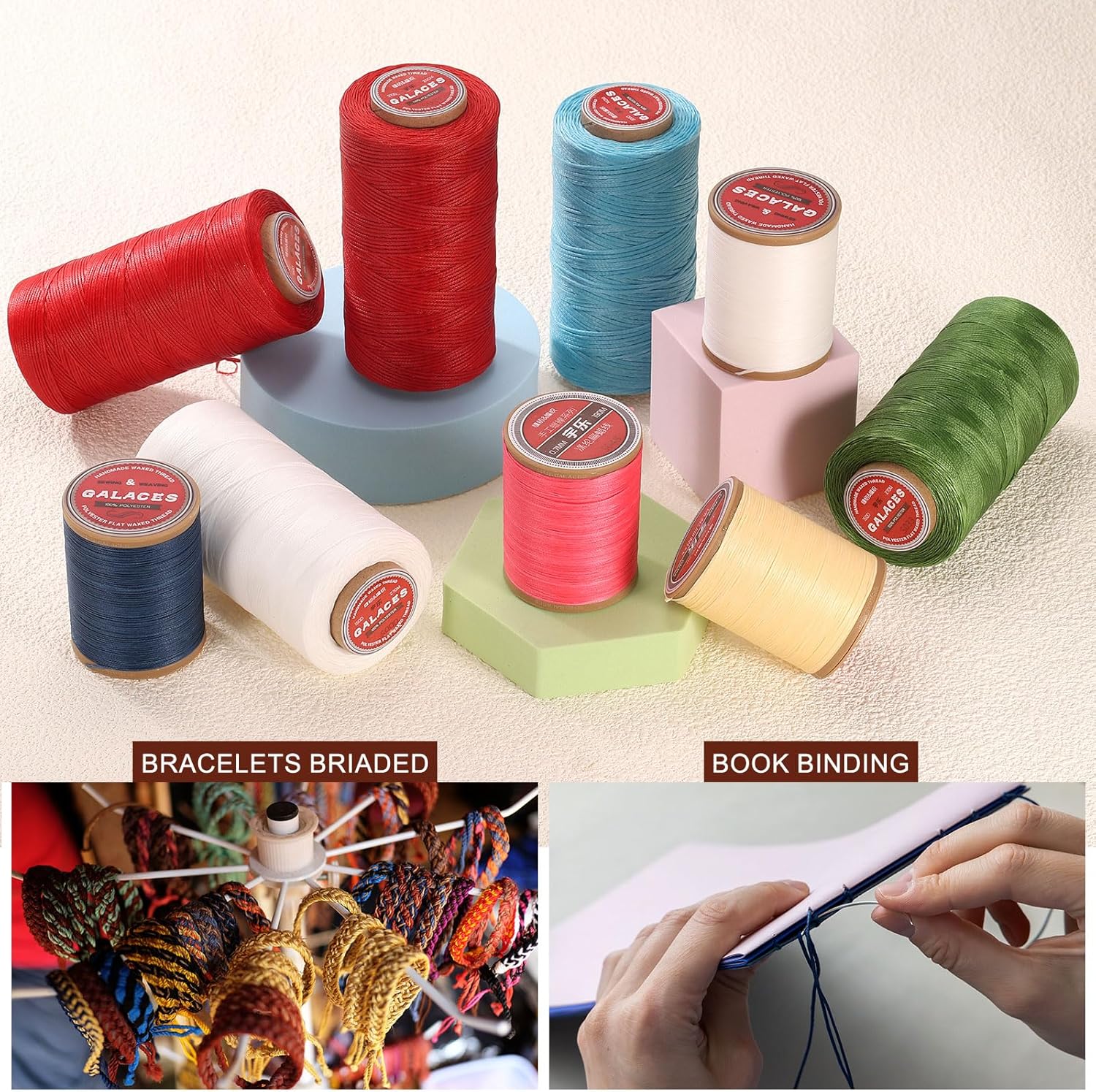 - [ Ultra-Durable and Vibrant Color ] - Experience great strength, durability, and versatility with our 100D waxed polyester thread. Designed to withstand high temperatures and resist fading, this tightly woven thread offers a smooth, even wax finish that doesnโt flake or stick to your hands. Its robust construction ensures it can handle rigorous use and frequent washing without losing its vibrant color.