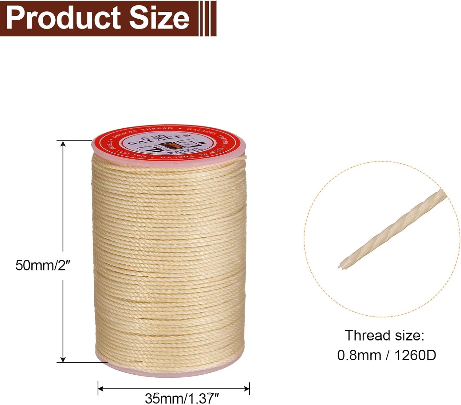 - [ Generous Length ] -With 55m (approx. 60 Yards) per spool 2 spools in total and a 0.80mm diameter, this round 1260D waxed polyester leather thread provides exceptional value. Its generous length reduces the need for frequent spool changes, allowing you to seamlessly complete multiple projects.