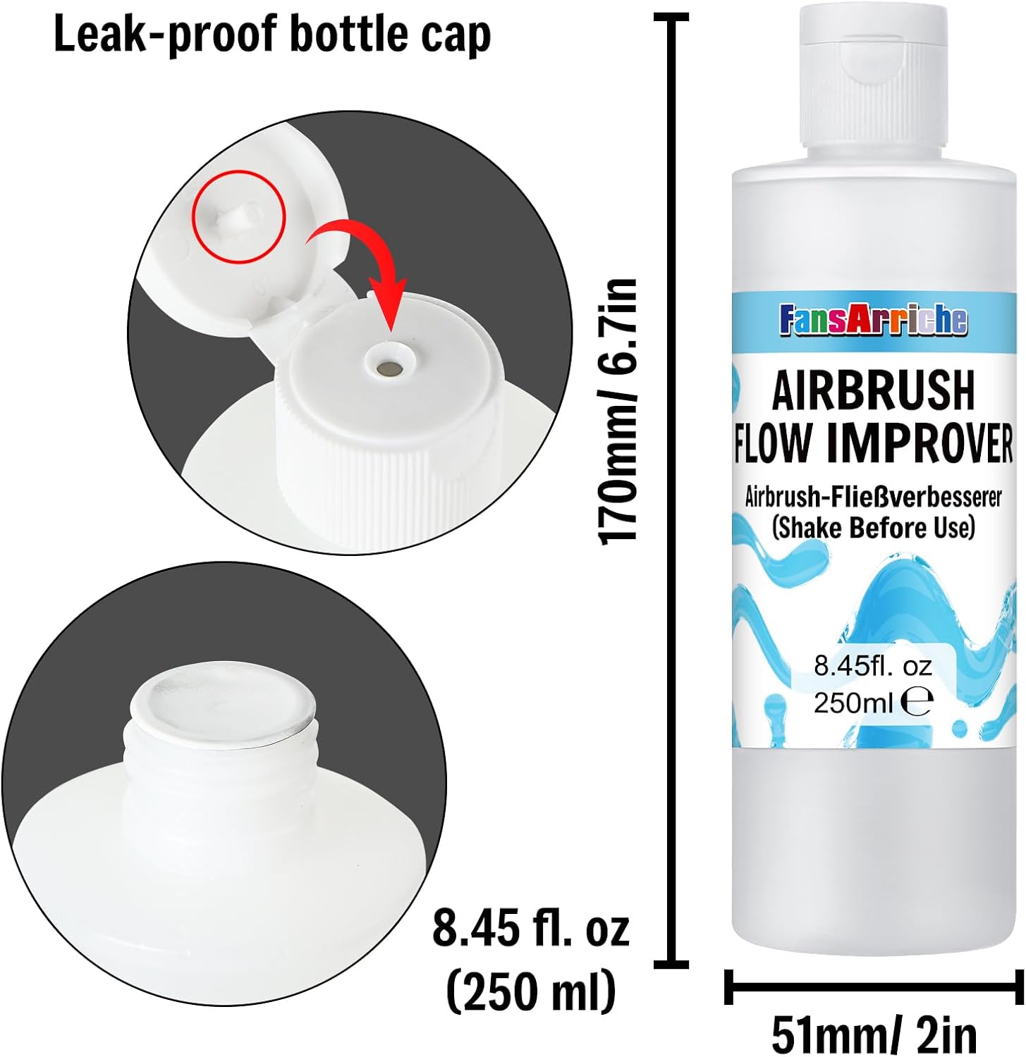 FansArriche Airbrush Flow Improver, 250 ml (8.45 oz) Bottle for Acrylic Airbrush Paints, Reduce Clogs and Improve Acrylic Paint Flows