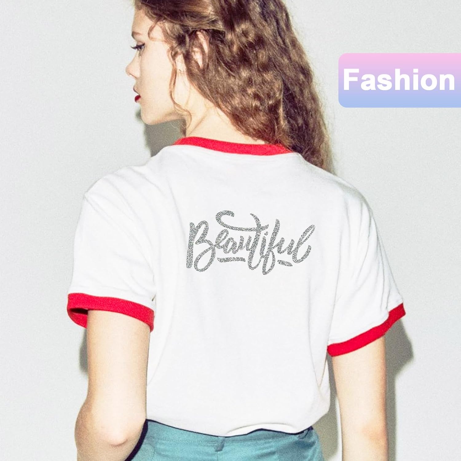 ASIMEROD Silver Glitter Heat Transfer Vinyl Rolls- 12" x 10ft. Silver Glitter Iron on Vinyl for DIY T-Shirts, Glitter for All Cutters, Heat Transfer Vinyl