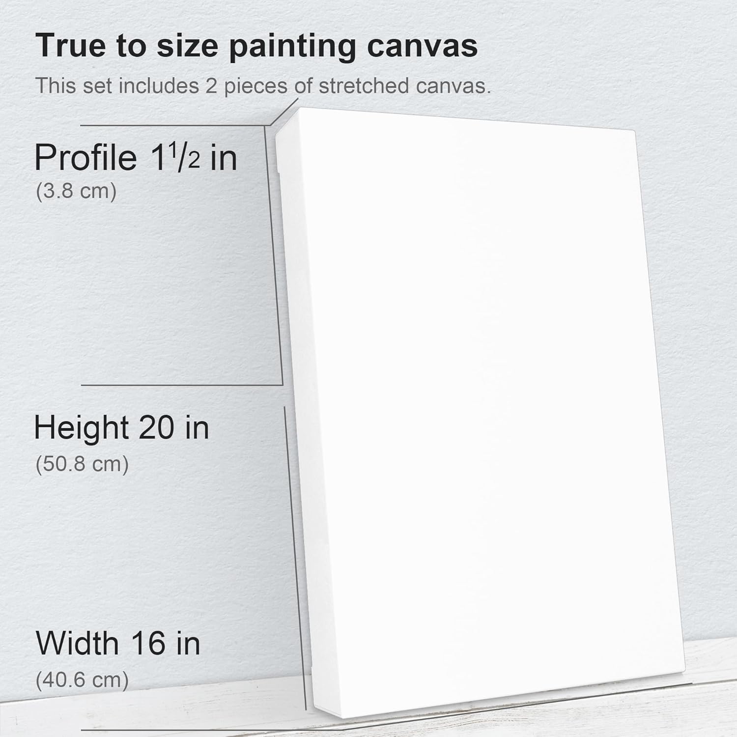 PHOENIX 16x20 Inch 2 Pack Gallery Canvas - 1.5 in Thick Large Canvases for Painting - Deep Edge 100% Cotton 11 Oz. Gesso Primed White Blank Professional Canvas Oil & Acrylic Paints