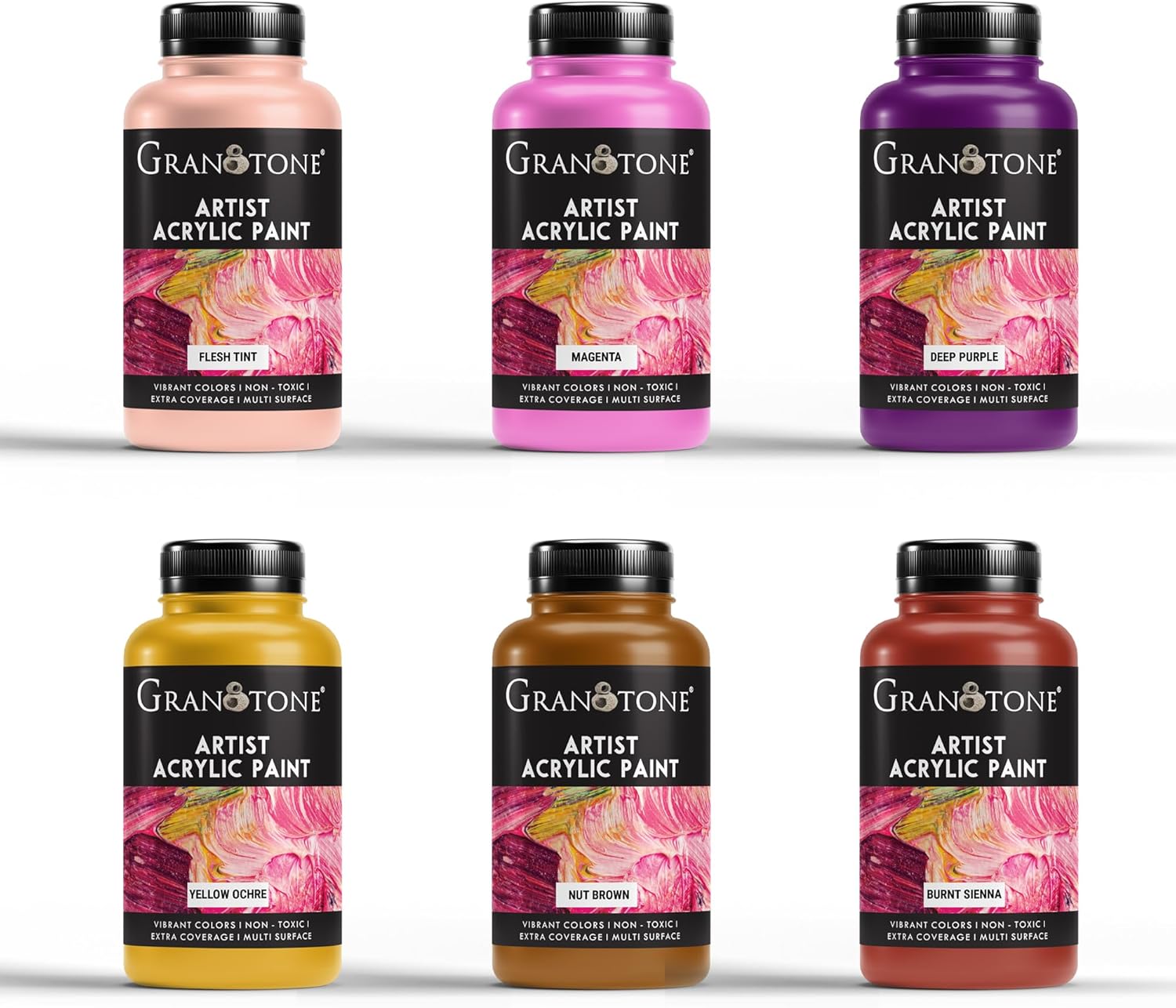 GRANOTONE Acrylic Paint Set - 6 Primary Colors, 7 oz Each | Non-Toxic Student Acrylics for Artists, Kids & Hobbyists | Ideal for Painting & Crafting | Vibrant & Safe Art Supplies | Made in India