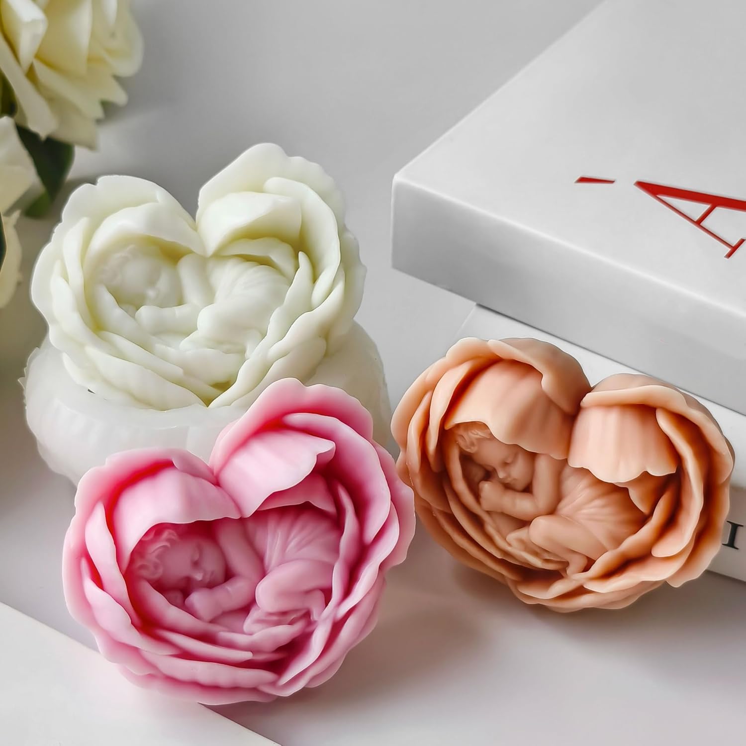 Heart Rose Flower Succulent Candle Mold - Baby Style - Resin Casting Silicone Molds for Home Decor & Candle Making Wave Spiral Mold