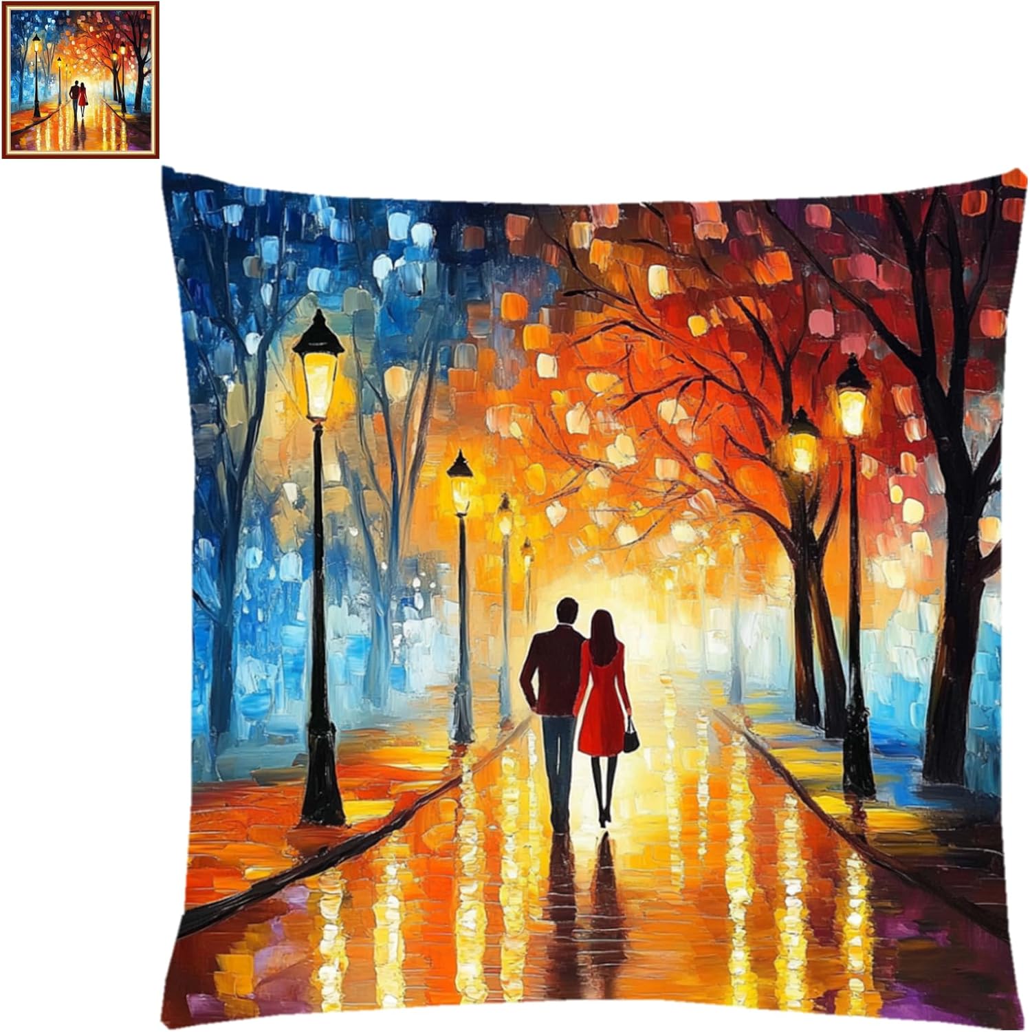 Fanxvivy Stamped Cross Stitch Kits for Adults Beginners Pillow Needlepoint Kit with Embroidery Pattern Needlework Kit Prestamped Stitches Kit 11CT Cross Stitching-Lovers Walk 18x18 inch