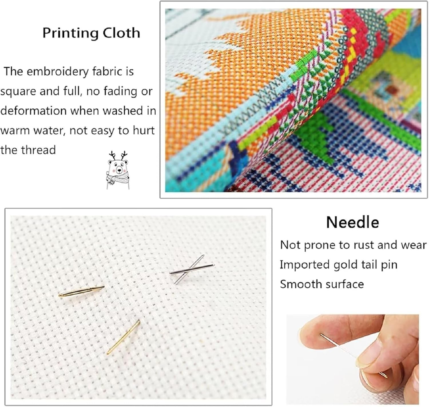 - 💙 【Easy to operate】 Needlepoint kits include everything you need to start an easy embroidery journey, including pre sorted cotton thread, 11 mesh pre printed cotton canvas, high-definition drawings, white cushion backing, 2 embroidery needles, and easy to follow instructions; It is very suitable for housewives, mature women, and craft enthusiasts.