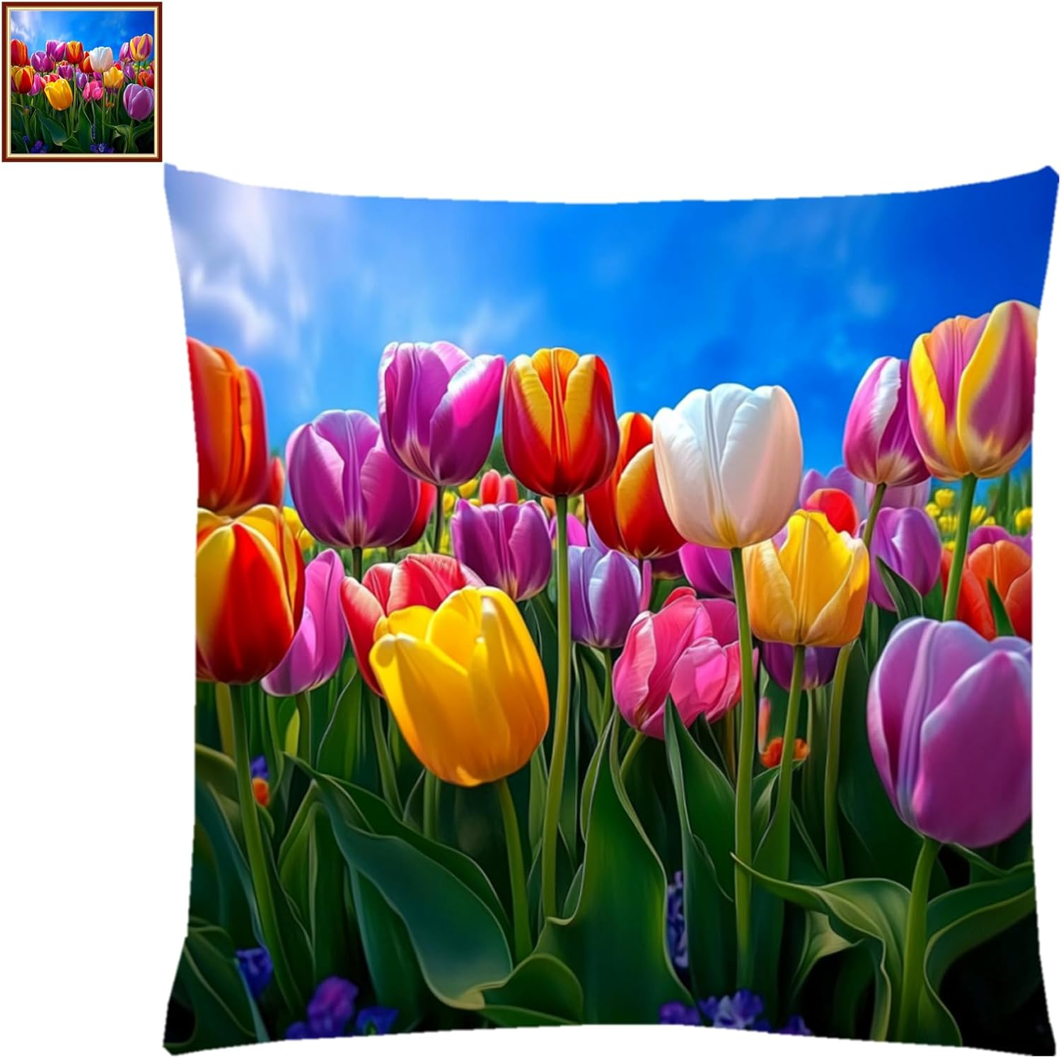 Fanxvivy Stamped Cross Stitch Kits for Adults Beginners Pillow Needlepoint Kit with Embroidery Pattern Needlework Kit Prestamped Stitches Kit 11CT Cross Stitching-Colorful Tulips 18x18 inch