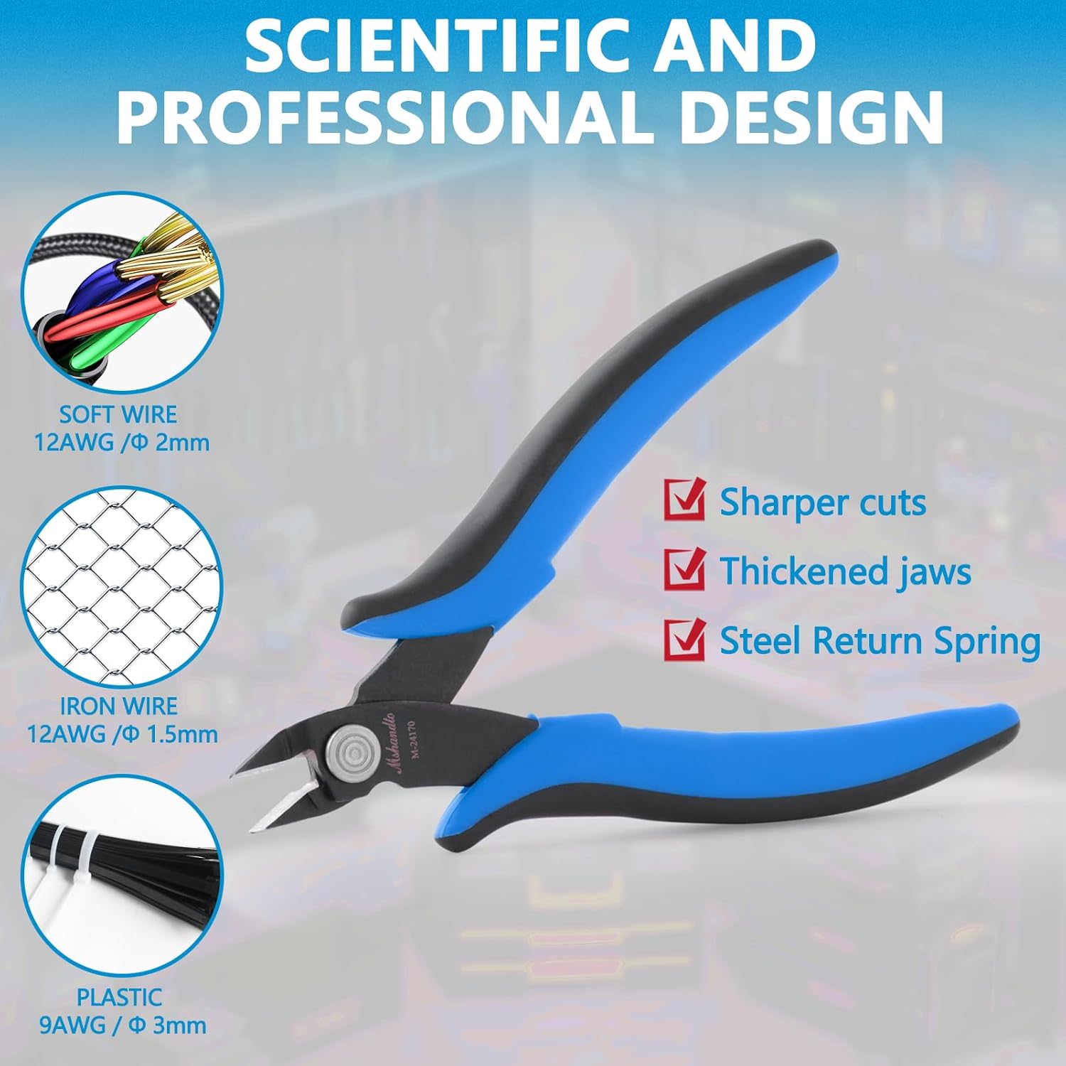 - π [2pack Tool Set] Our diagonal pliers feature different colored rubber grips for easy differentiation and comfortable use. The curved bevel plier head design with an inclination of 28Β° is more suitable for small spaces and precision models, and the ultra-thin shape increases the passage capacity in narrow areas