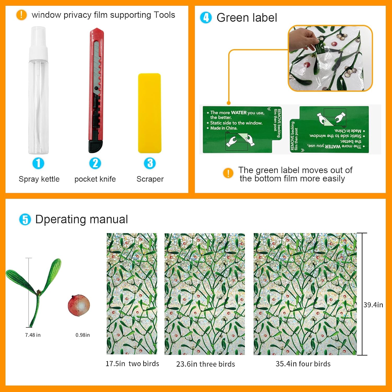 - DECORATIVE DESIGN: These window films feature a beautiful green leaf pattern that adds a natural freshness to any room and creates a rainbow visual effect when the sun shines.