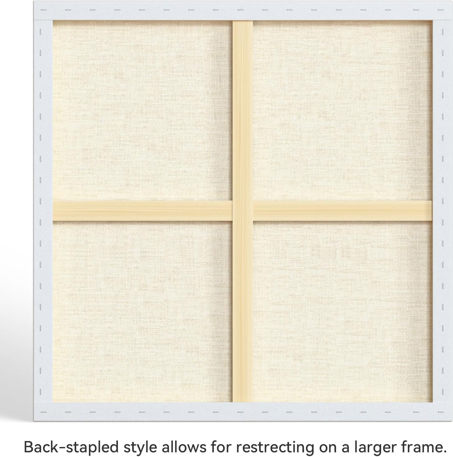 - PRE-STRETCHED COTTON CANVAS - Natural cotton, hand-stretched for outstanding tension. Back stapled onto stretcher bars. Highly gessoed canvas, holds more paints than studio grade canvas and keeps paintings last decades.