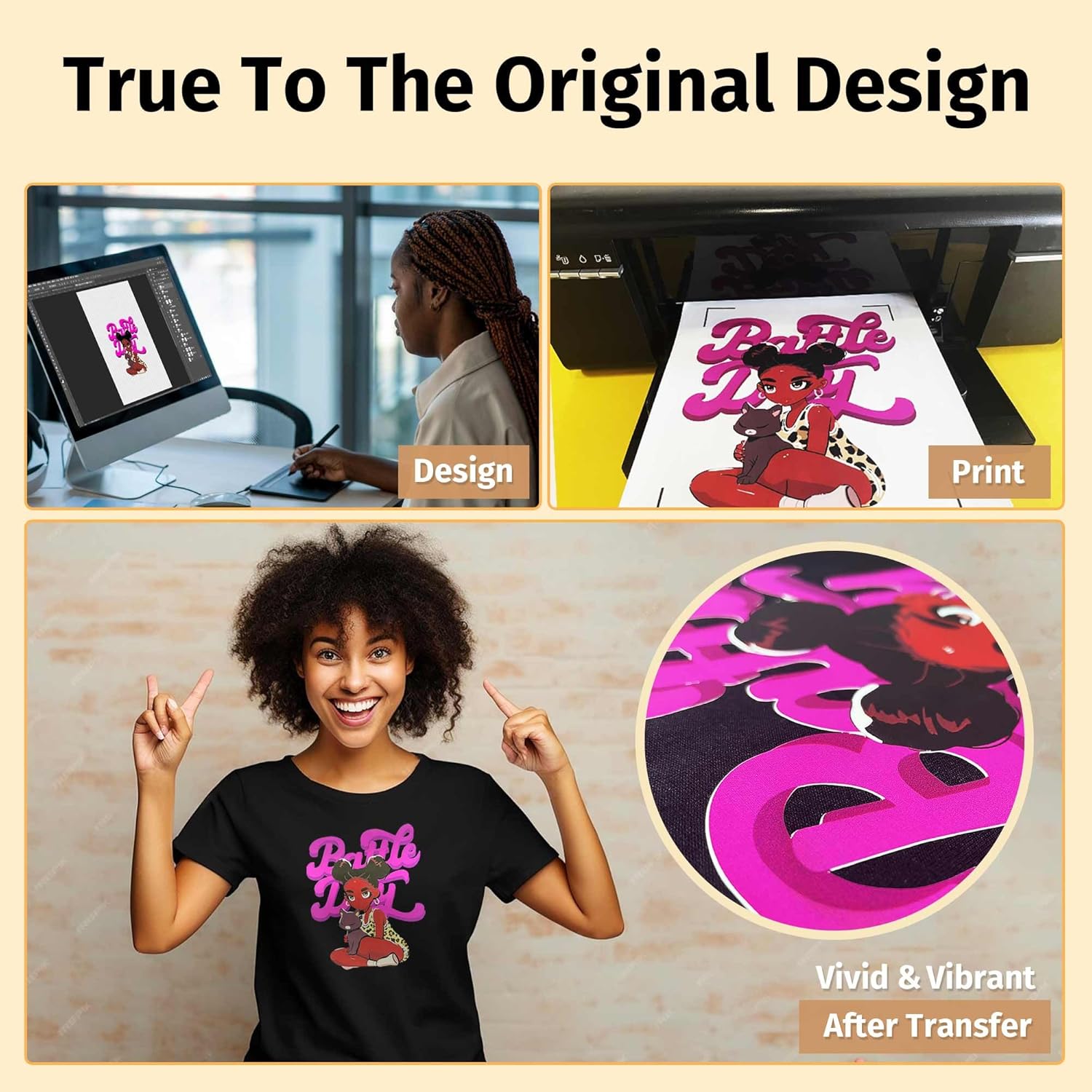 TransOurDream Tru-PHTV Printable Heat Transfer Vinyl for T Shirts (20 Sheets, 8.5x11) Full-Color Iron on Vinyl for Inkjet Printer Easy to Cut & Weed DIY Design
