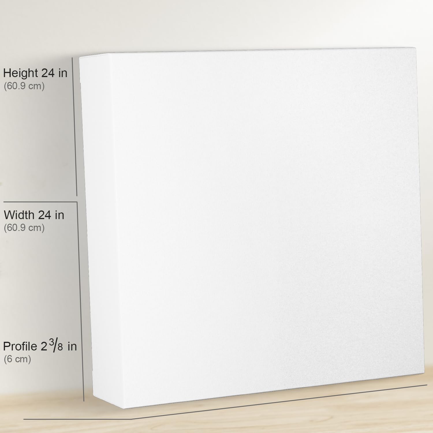 PHOENIX 24x24 Inch Museum Canvas - 2 3/8 Inch Thick Porfile Deep Large Stretched Canvas for Painting 1 Pack 100% Cotton 11 Oz. Gesso Primed White Blank Professional Canvas Oil & Acrylic Paints