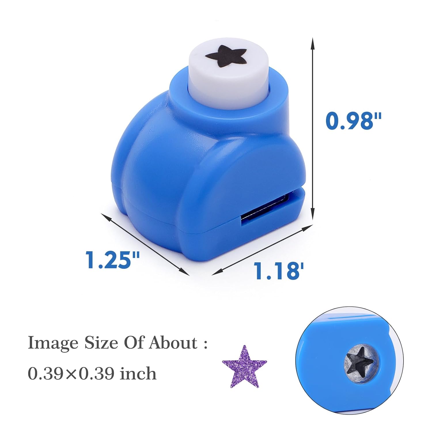 - Size: Mini hole puncher shell is about 0.98''×1.18''×1.25'' and hits an image size of about 1×1cm. The package contains 36 patterns (snowflake, heart, etc). You can receive each of the 20 shapes shown in the first photo.