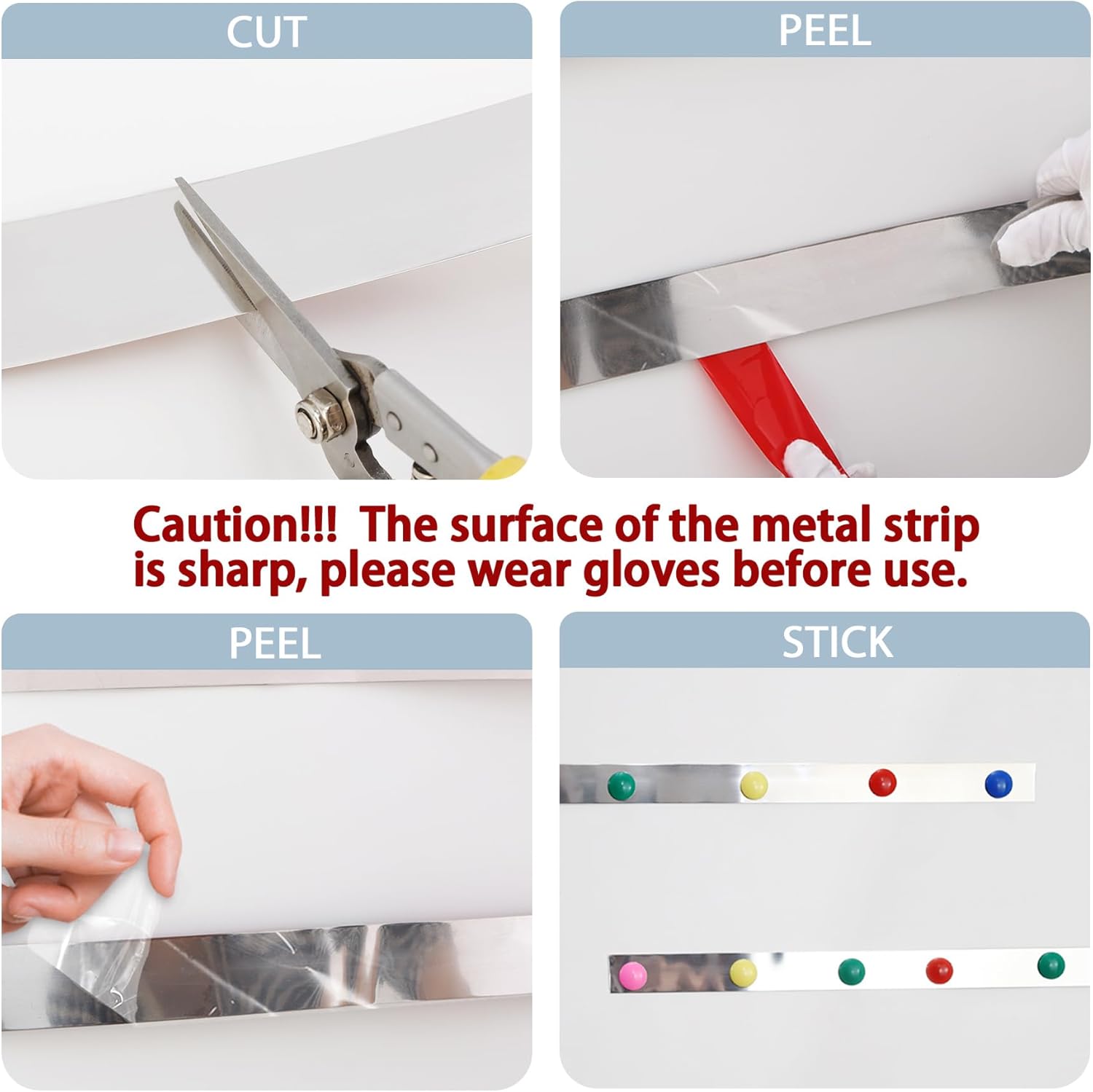 - Package Contents: Your purchase includes 6 magnetic strips, each sized at 15''L x 1.97''W (38cm x 5cm), offering ample space for posting photos or notes. Additionally, the set comes with 48 spot magnets to firmly hold lightweight items