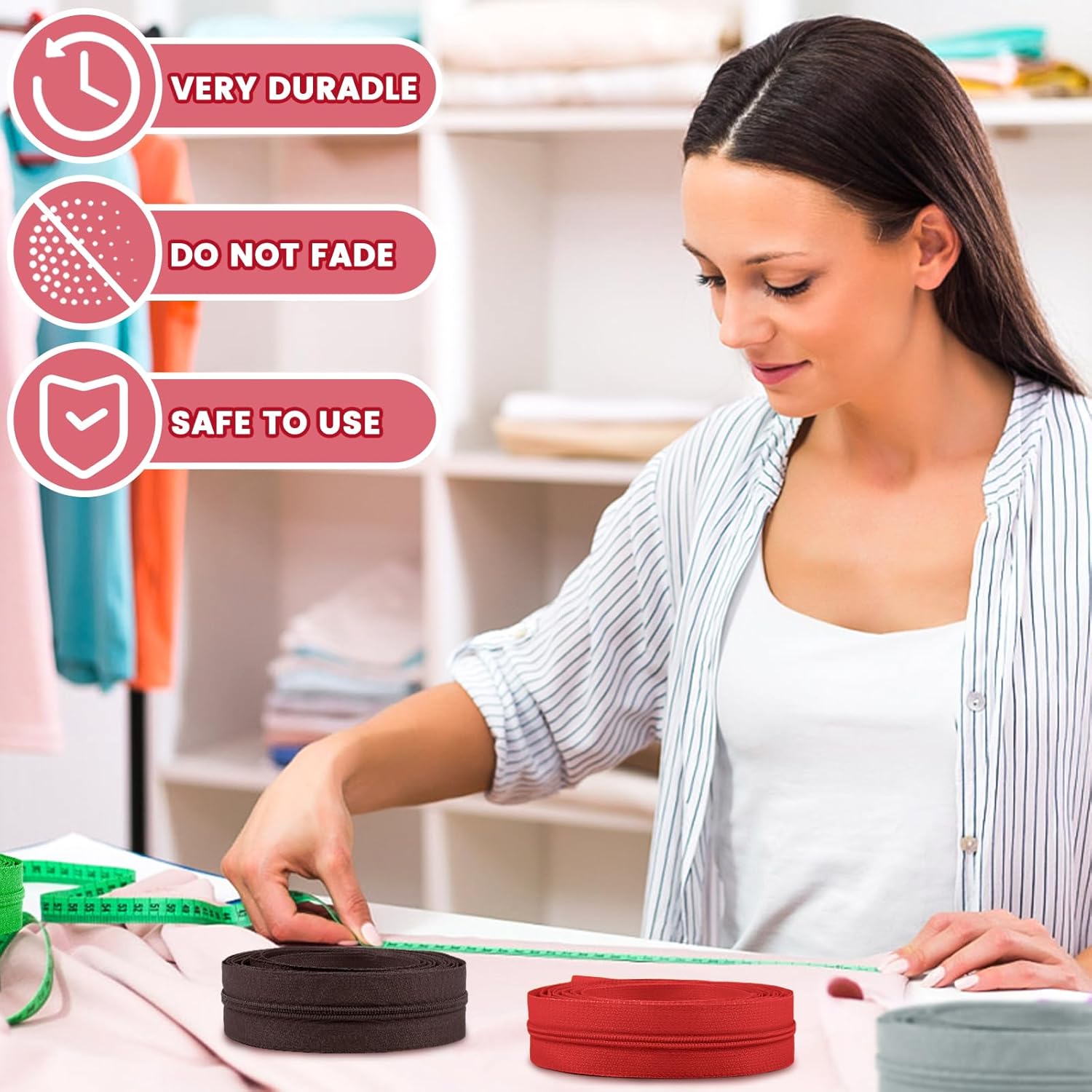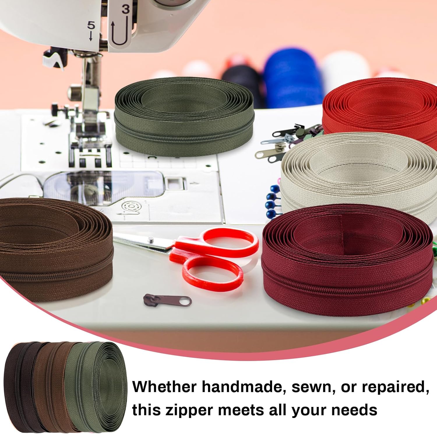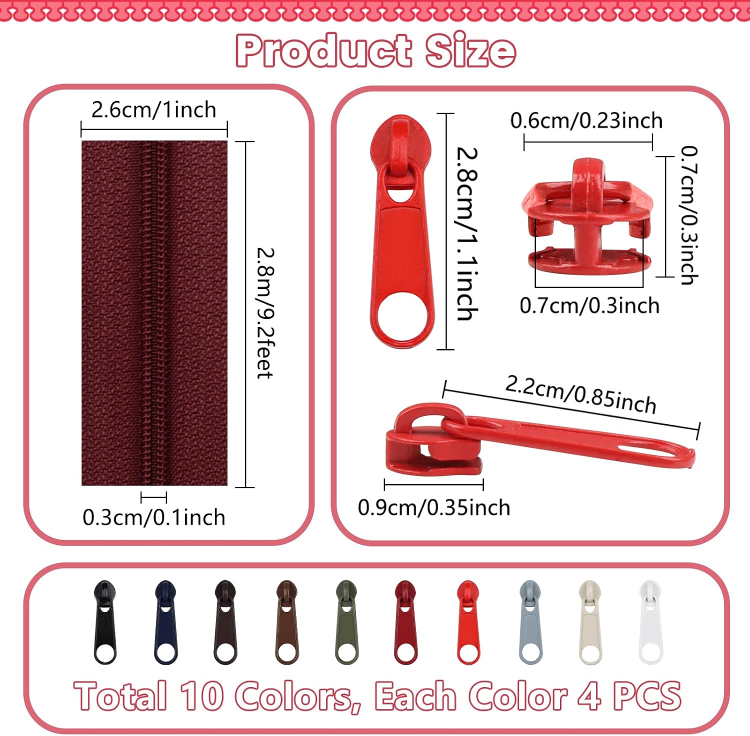 - Adequate to Meet Your Needs: you will receive about 31 yards of nylon coil zipper rolls in 10 different colors, per color a roll and 3.1 yards per roll, come with 40 zipper sliders and 4 per color, enough amount and colors can meet your need and replacements