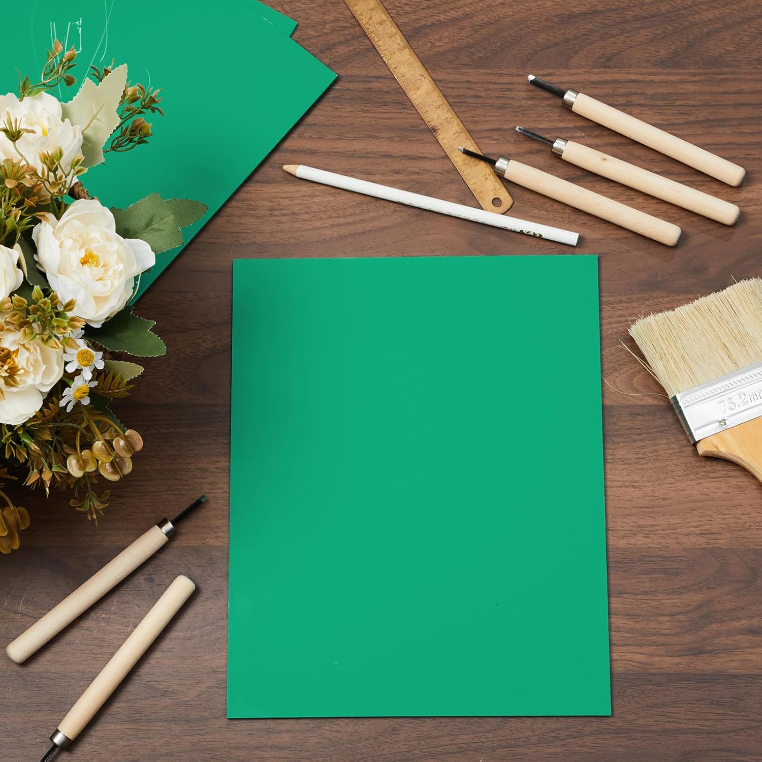Yeaqee 8 Pcs 8 x 10 Inch Linoleum Block Rubber Carving Block Soft Linocut Blocks Large Linoleum Sheet Unmounted Lino Plates for Engraving Art Project Printmaking Artist Studio Supplies, Green