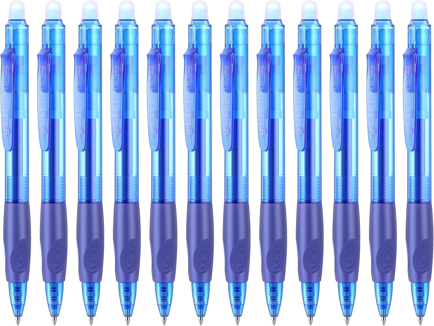 - Top Quality: 12 pack erasable gel pens with 0.7 mm fine tip, premium ink and soft rubber grip for smooth writing and durability! Great for note-taking, kid-doodling, sketching, writing and being creative in a fun and skilled way.