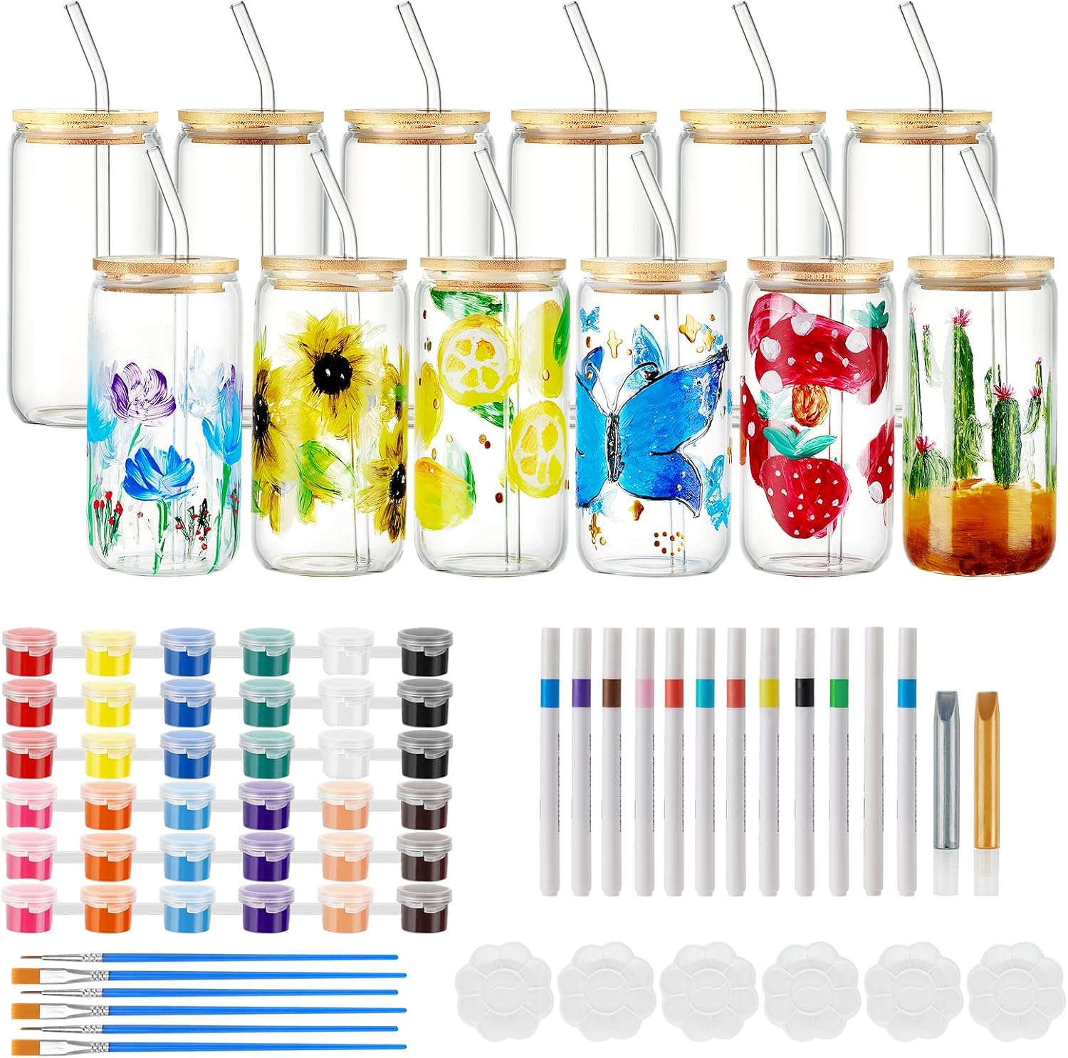 - Sufficient Package Quantity: Have abundant art choices, because our paint your own wine glasses include 12 markers in 12 ink colors, 36 bright acrylic paints (12 colors), 2 colors of glass paint outline pens, 12 brushes and 6 palettes; sufficient quantity to share with your friends and family and create together