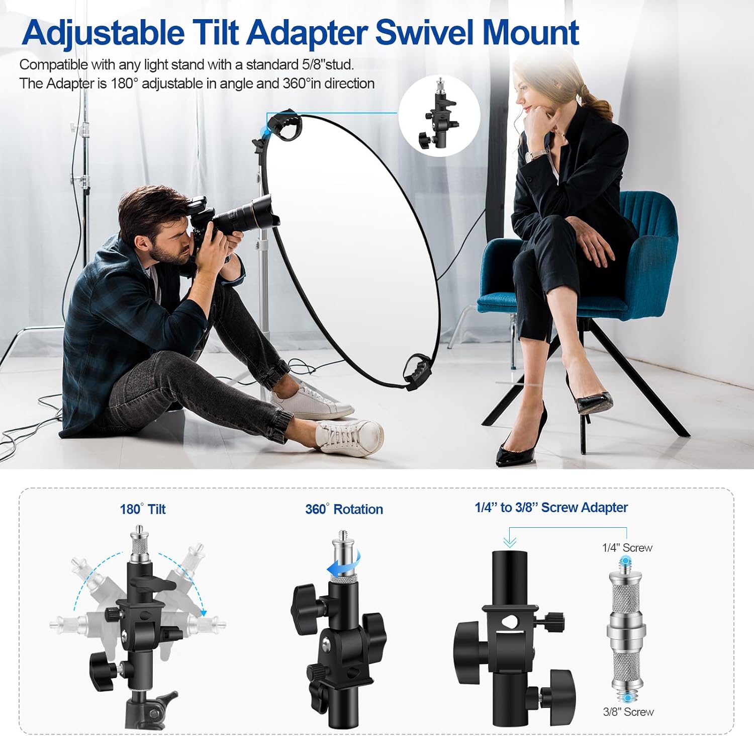 WELLMAKING 32''(80cm) Photography Reflector Dual Handle Collapsible 5-in-1 with Tilt Adapter Reflector, White Portable Stand and Pouch for Studio & Outdoor Lighting-Translucent,Silver,Gold,White&Black