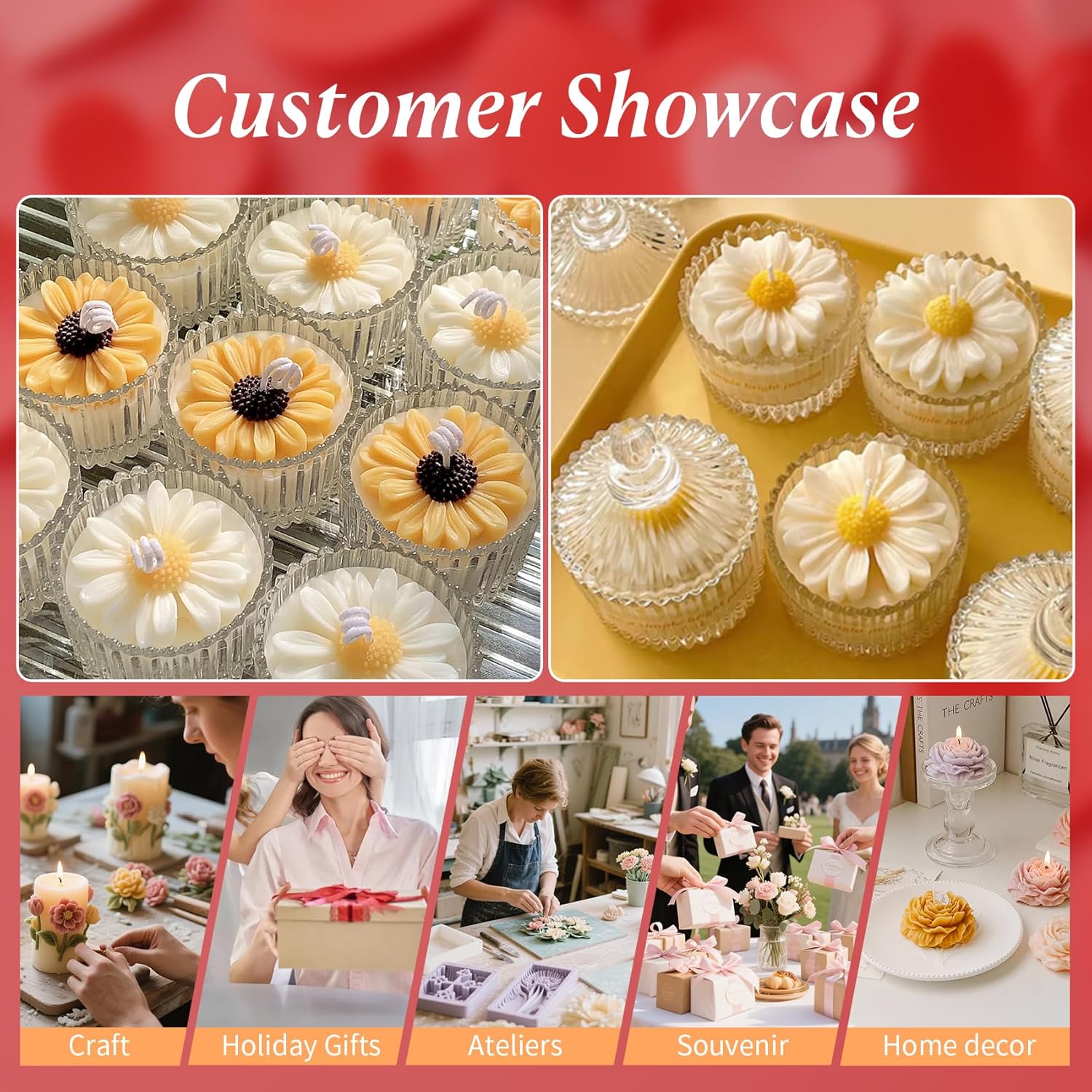 - 【Gifts of Love】Adorable daisies, symbolizing happiness, radiate a sense of purity and beauty. You can use these molds to create gifts for your beloved ones during festivals like Mother’s Day, Father’s Day, Valentine’s Day, Thanksgiving Day, and Christmas.