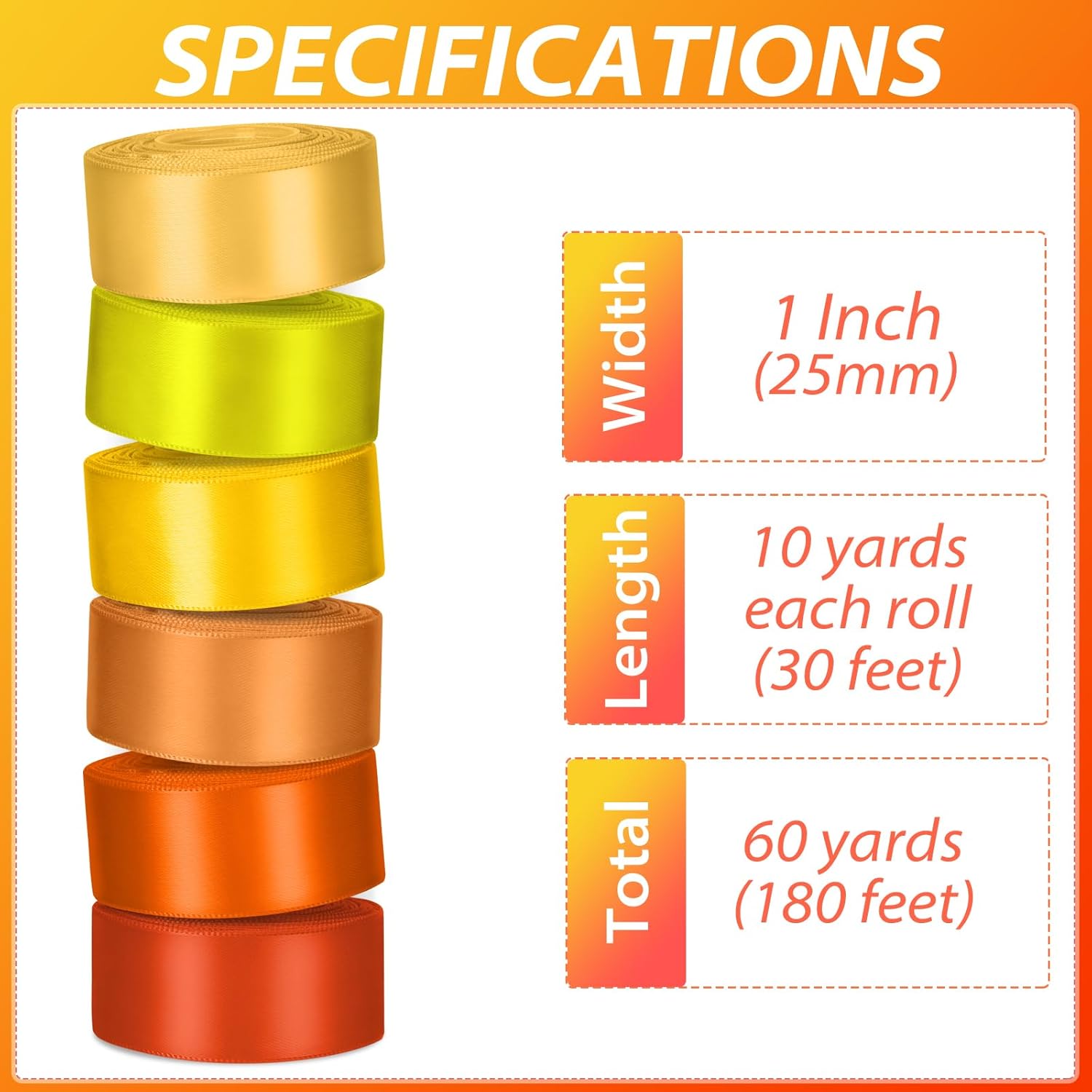 - 【What's Include】:6 rolls 1 inch wide single-faced orange and yellow ribbon measures 10 yards (30 feet) each roll, 60 yards (180 feet) in total