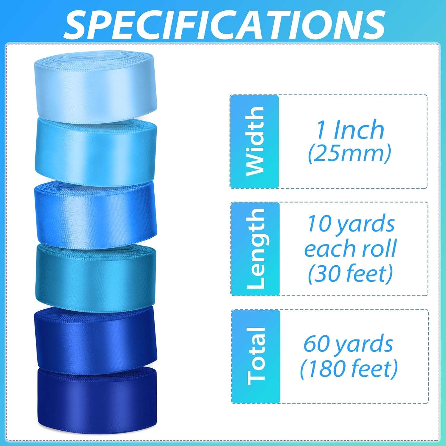 - 【What's Include】:6 rolls 1 inch wide single-faced blue ribbon measures 10 yards (30 feet) each roll, 60 yards (180 feet) in total