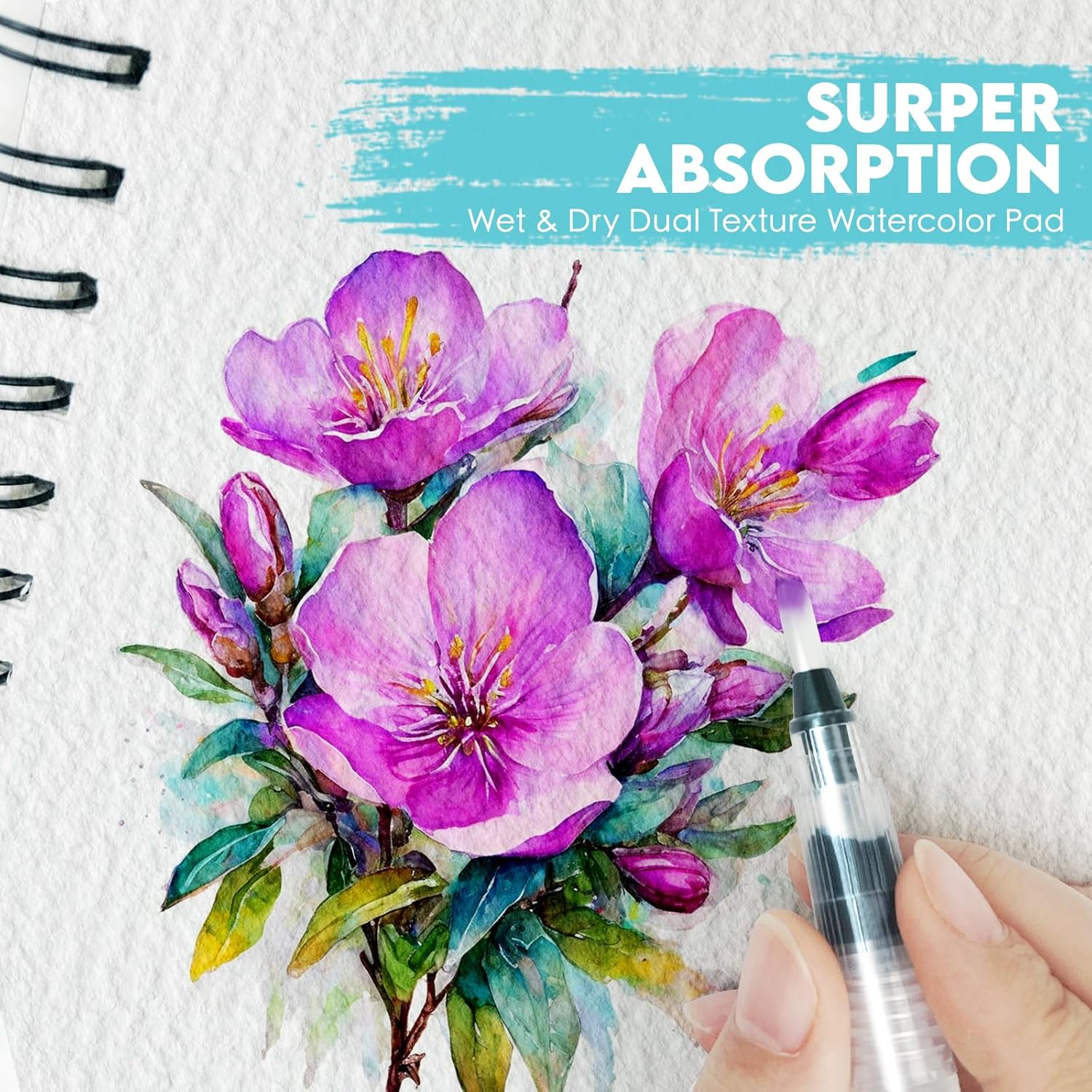 - Premium 100% Cotton Watercolor Paper β 140lb/300gsm acid-free, cold-press texture ensures vibrant color absorption, minimal warping, and long-lasting artwork.Ideal for watercolor, ink, and gouache