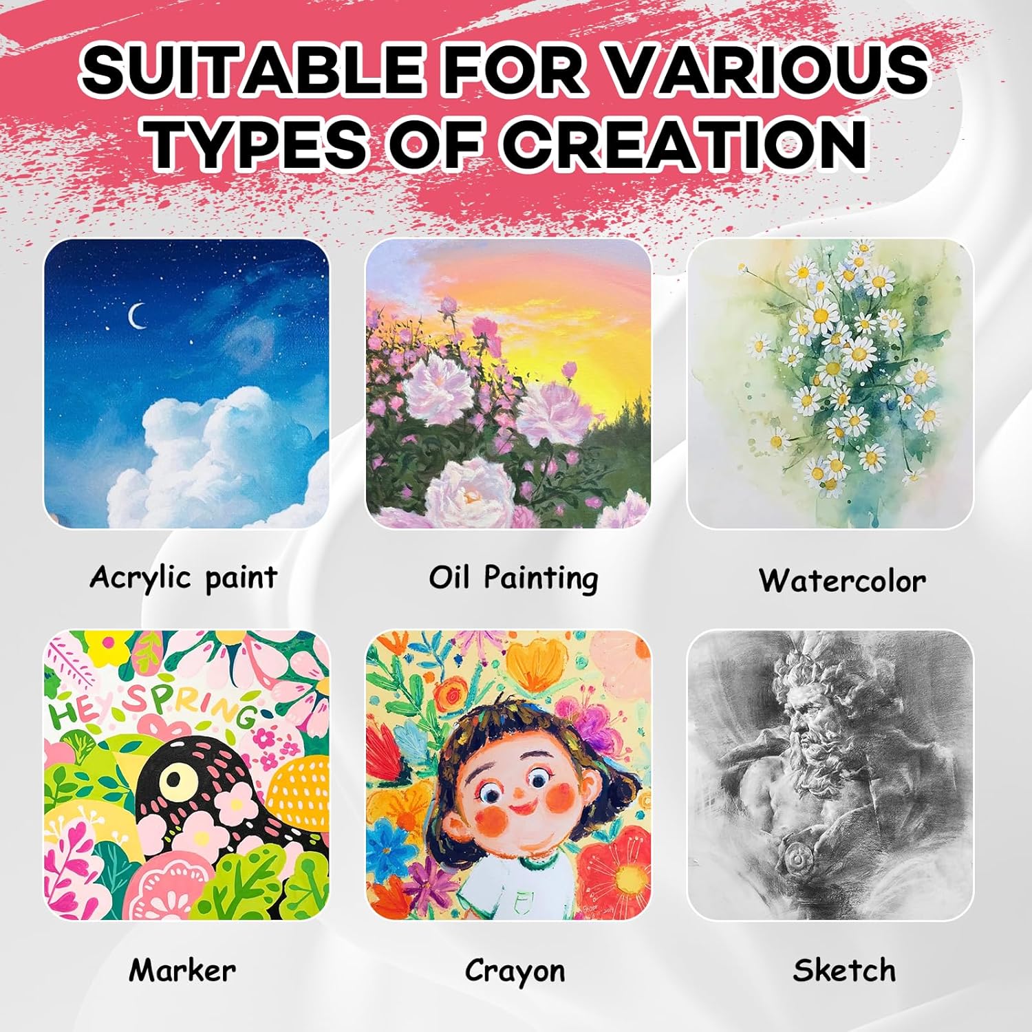 - 【Blank Canvases】 Our product using a safe, non-toxic, and acid free primer, the interior contains a sturdy board core that is not easily deformed or warped. A large amount of paint will not affect the use of the product.