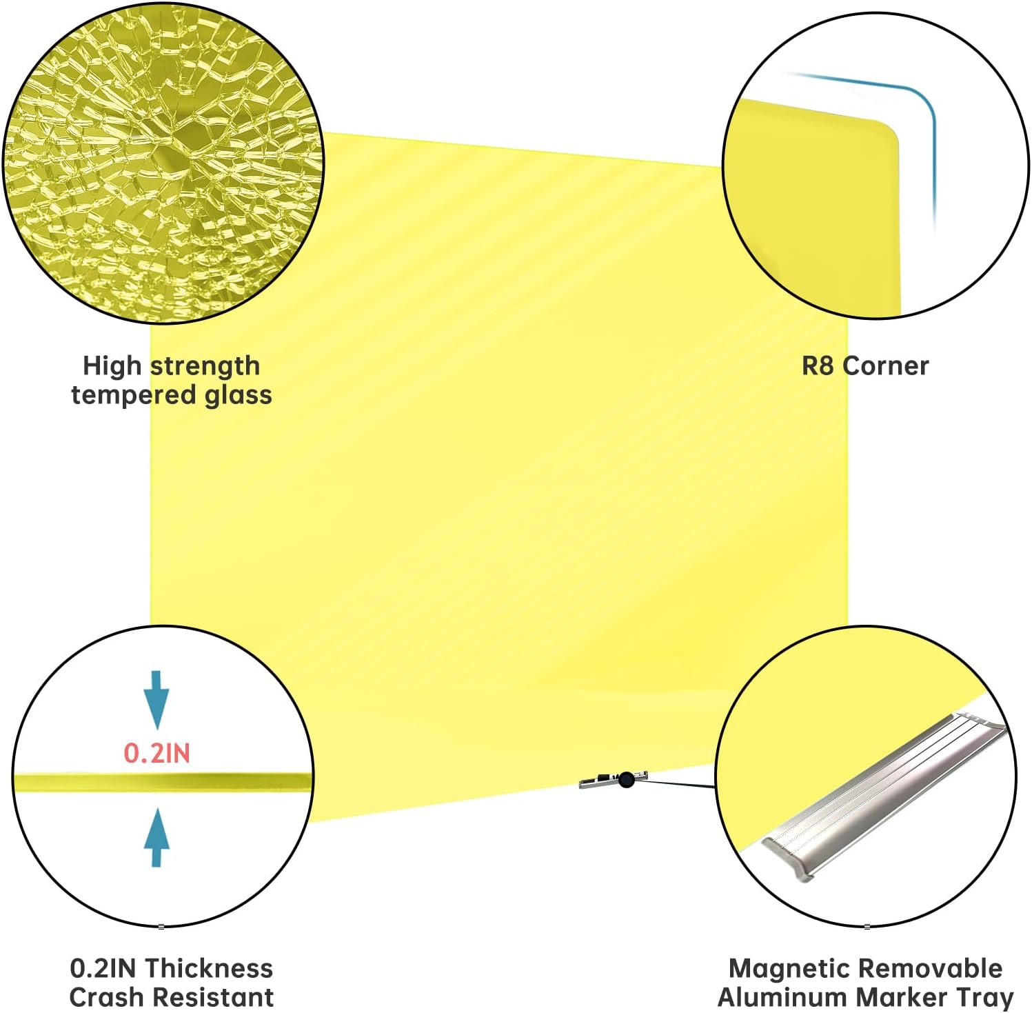 Magnetic Glass Whiteboard - Glass Dry Erase Board 48"x36" Large Frameless Glass Board for Walls Office School and Home, Yellow