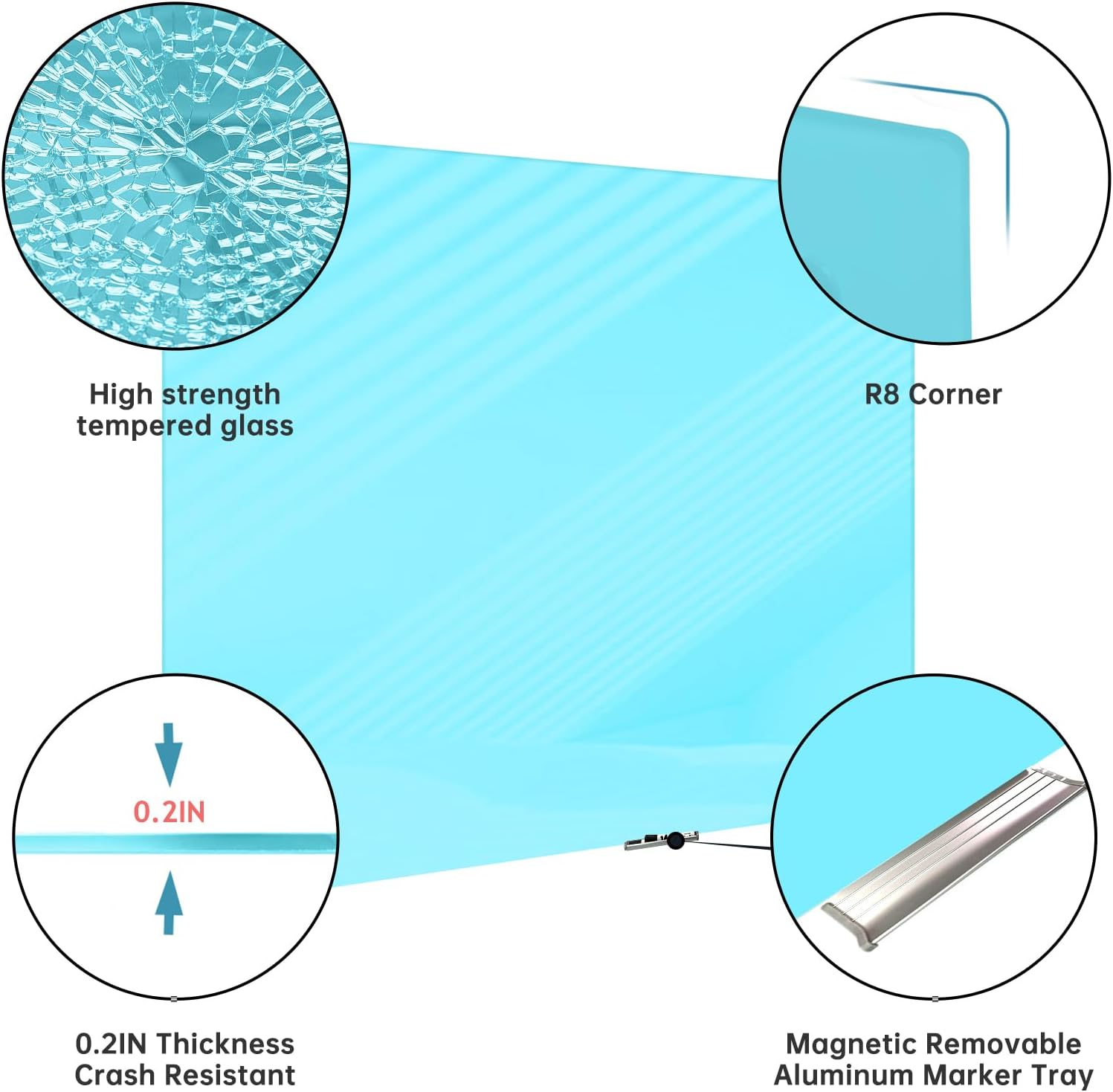 - Modern Frameless Design: Elevate your space with our 48"x36" frameless glass whiteboard, designed to blend seamlessly with any modern decor. The sleek, edge-to-edge writing surface maximizes your creative area, making it a stylish focal point for home, office, or classroom.