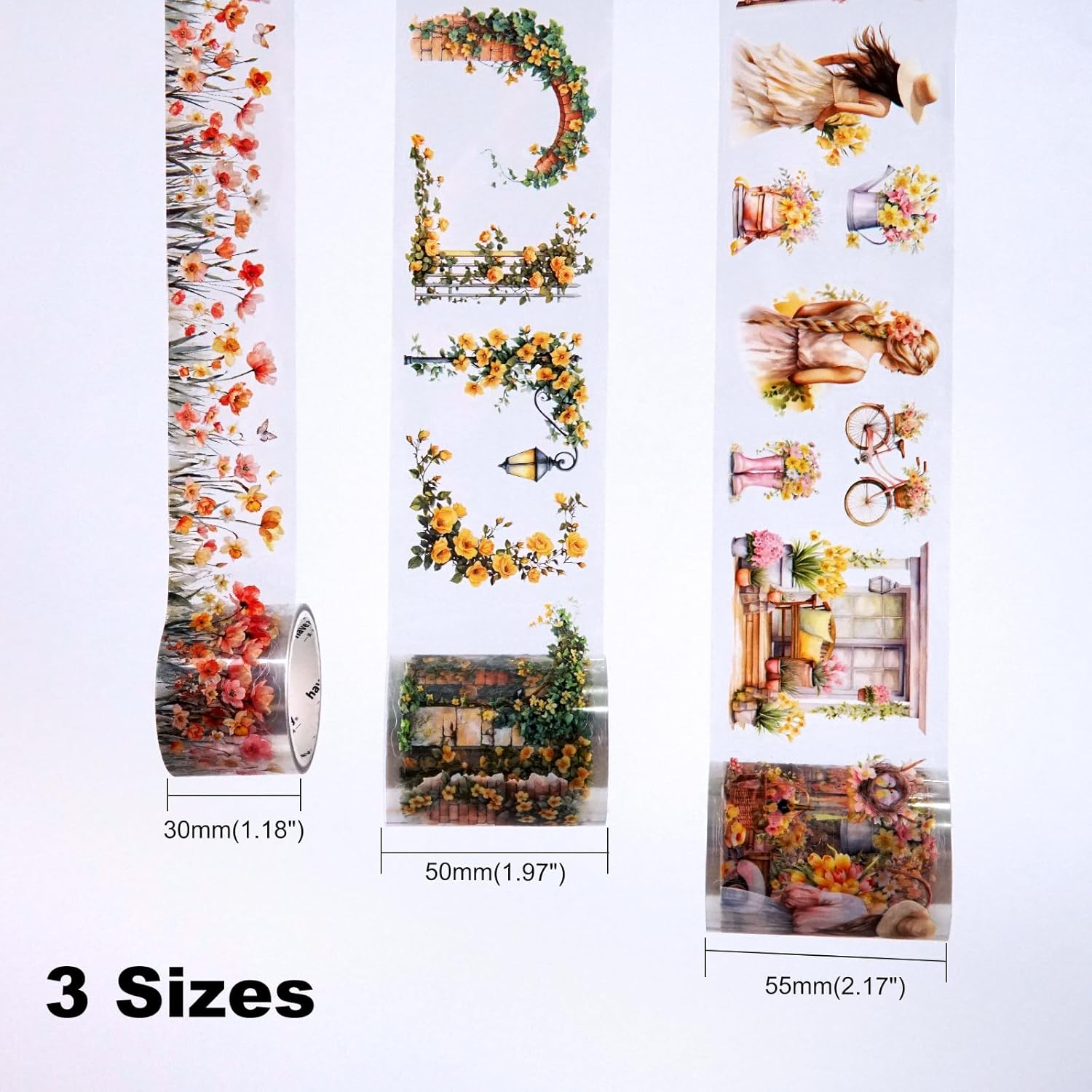 - Three Sizes for Creative Flexibility: The set includes three widths: 30 mm (1.18"), 50 mm (1.97"), and 55 mm (2.17"), offering versatility for layering and artistic expression. Great for bullet journaling, collage art, card-making, and handmade decorations