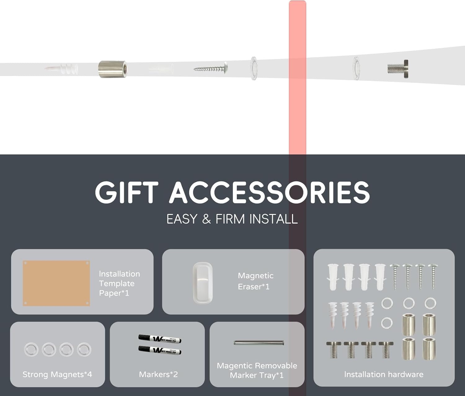 - Enhanced Functionality: Our magnetic glass whiteboard comes with 4 strong magnets, 2 markers, 1 magnetic eraser, and a magnetic removable aluminum marker tray, offering everything you need for an efficient and organized workspace. The powerful magnets ensure your documents stay securely posted.