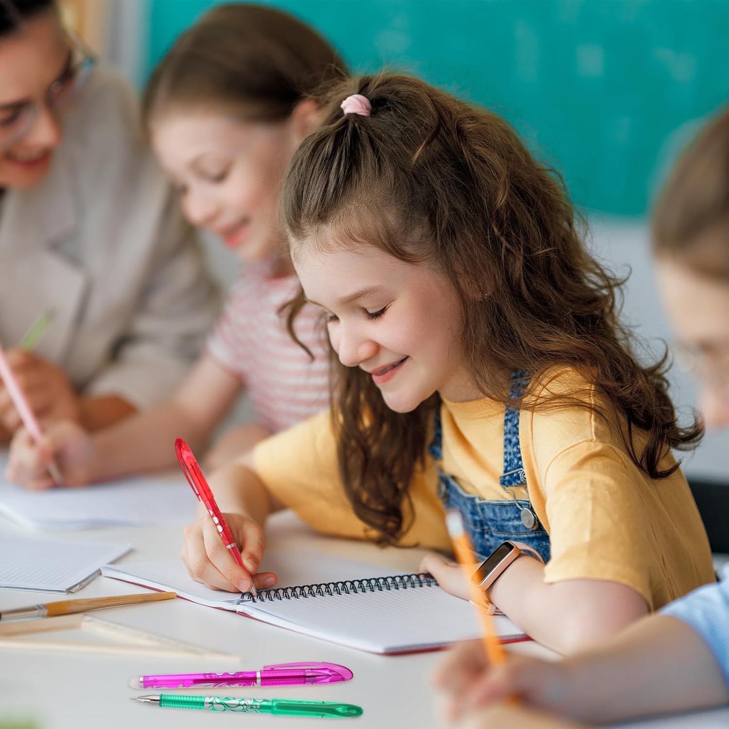 - Material: Plastic, Metal; Ink Color: Orange; Refill Length: 13cm / 5.12inch; Tip Diameter: 0.5mm; Packing List: 2Pcs of Heat Erasable Pens, 50pcs of Refills, 2pcs of Erasers