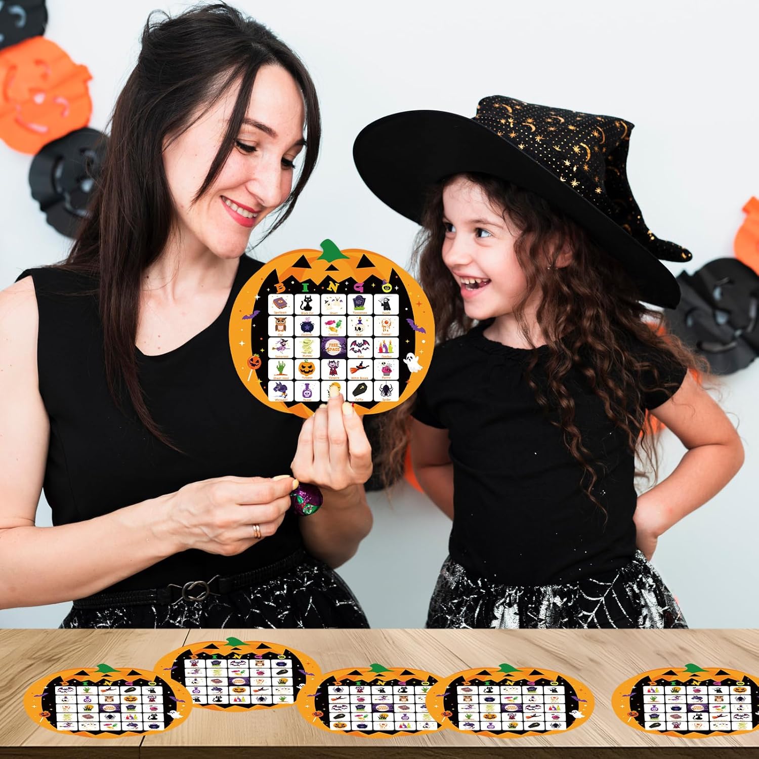 XZENTIRA Halloween 24 Players Games, Pumpkin Bingo Game Cards Set for Halloween Family Party Activities, Party Favors, Classroom Group Activities Bingo Games Set