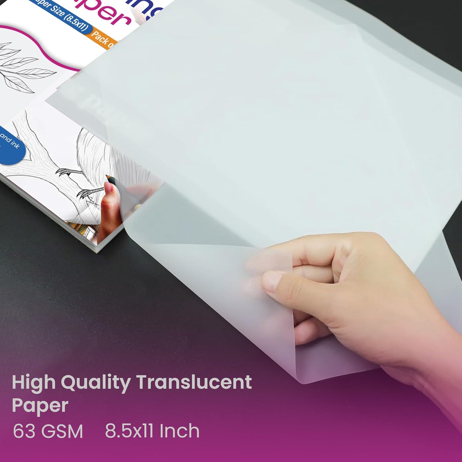 - TRACING PAPER SET: This tracing paper set includes 100 sheets of high-quality translucent vellum paper, measuring 8.5 x 11 inches and weighing 41lb/63gsm. Designed to resist tearing and curling, itโs perfect for arts, crafts, and tracing projects.